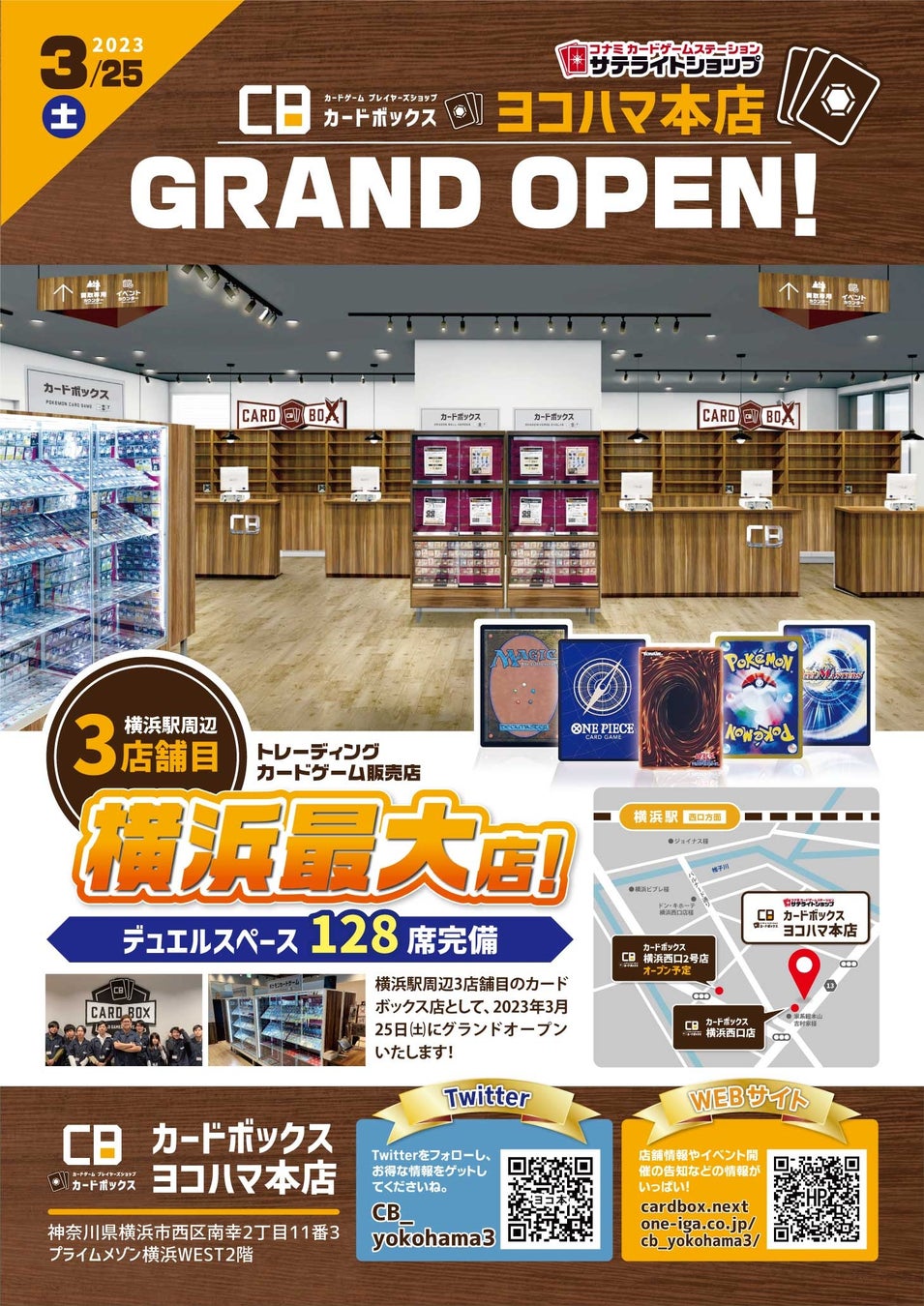 横浜を、駅前(西口)からおもしろく。 カードボックス横浜駅周辺3店目! カードボックス店舗横浜最大(2023年3月 自社調べ)のカードゲーム店が 2023年3月25日(土)でっかくオープン!!