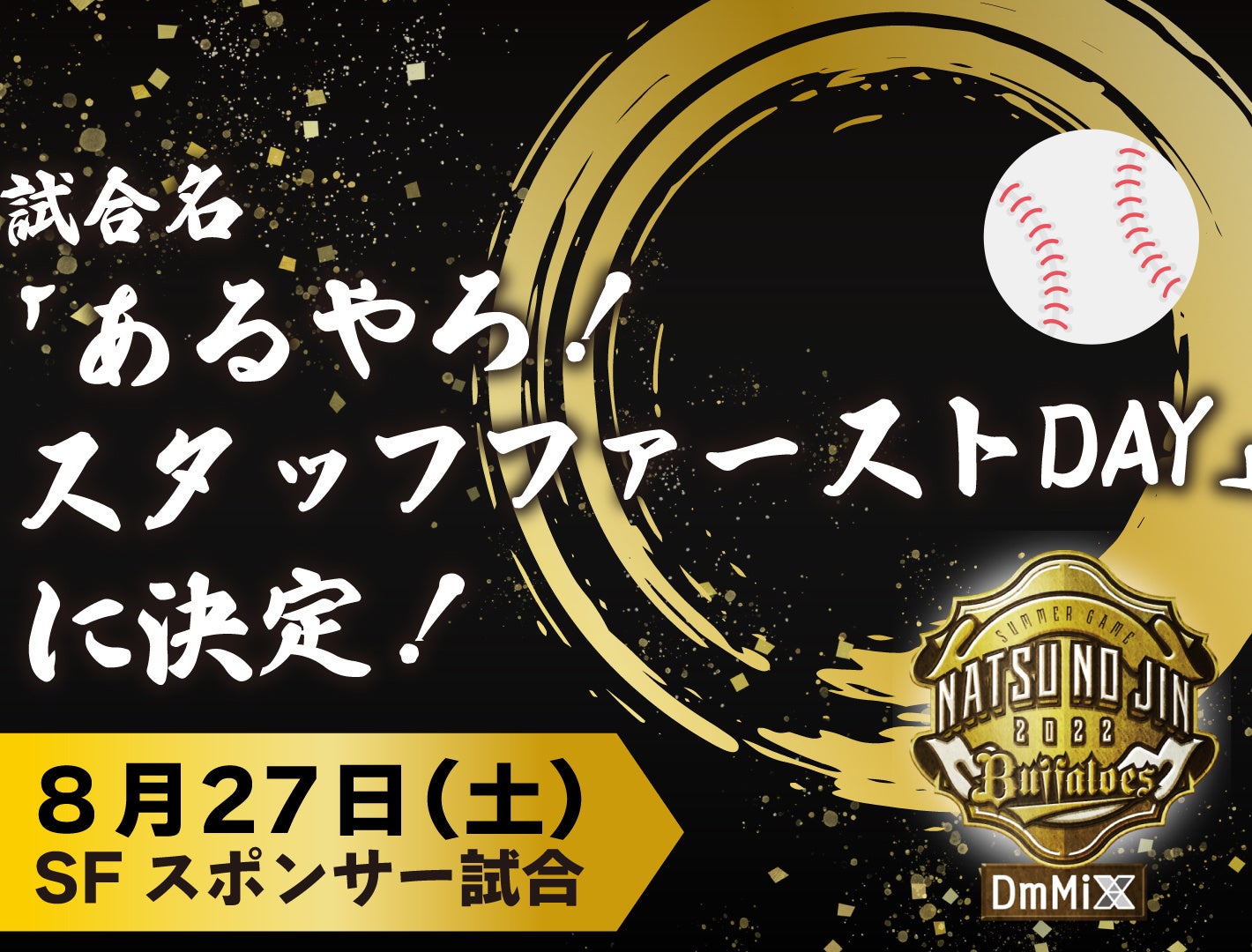 オフィスワークを中心に人材派遣・人材紹介事業などを展開する株式会社スタッフファースト(本社:大阪府大阪市 代表取締役:大野将幸 以下「スタッフファースト」)は、オリックス・バファローズ夏の恒例イベント「Bs夏の陣2022 supported by DmMiX」期間中、2022年8月27日(土)京セラドーム大阪にて、スポンサー試合「あるやろ!スタッフファーストDAY」を開催いたします。