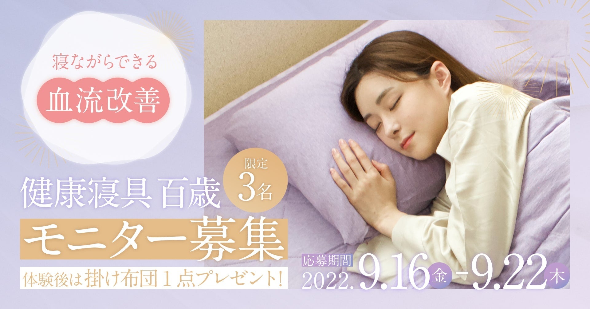 疲労回復をサポートする健康寝具「百歳」掛け布団3名にモニタープレゼント!9/16(金)より募集開始