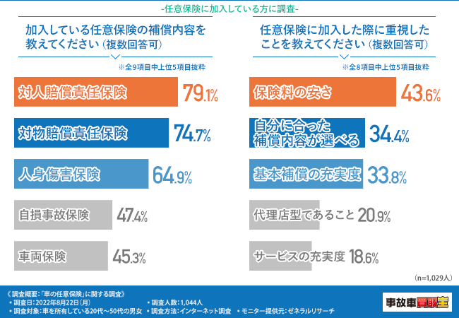 では、任意保険に加入している方は、実際にどのような点を重視しているのでしょうか?