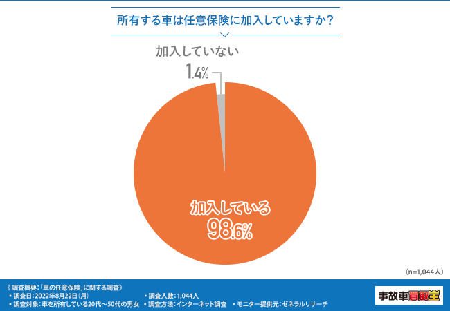 車を所有する方のほぼ100%が任意保険に加入していると回答