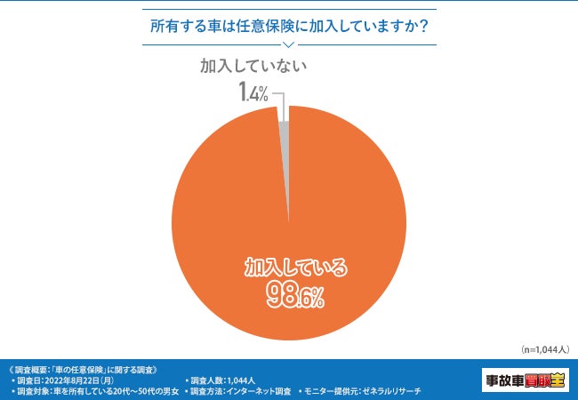 「所有する車は任意保険に加入していますか?」と質問したところ、9割以上の方が『加入している(98.6%)』と回答しました。