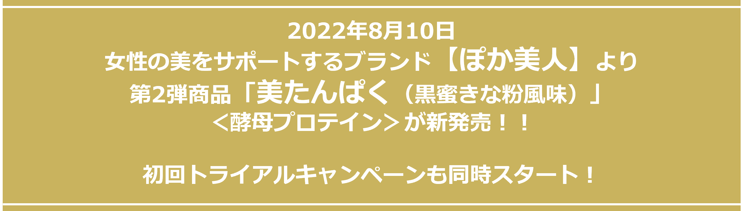 2022年8月10日女性の美をサポートするブランド【ぽか美人】より第2弾商品「美たんぱく(黒蜜きな粉風味)」<酵母プロテイン>が新発売!!初回トライアルキャンペーンも同時スタート!
