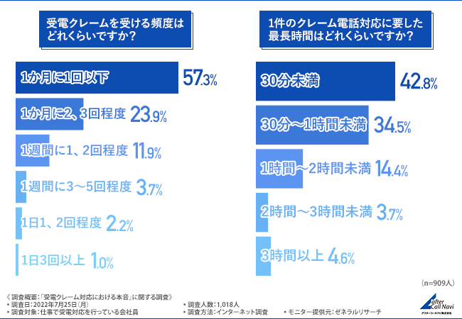 しかし、中には3時間以上という回答もあり、クレーム対応の苦労が伺えます。