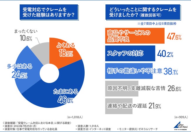 - クレーム対応経験者は約9割!内容は【商品やサービスの品質不良】が最多