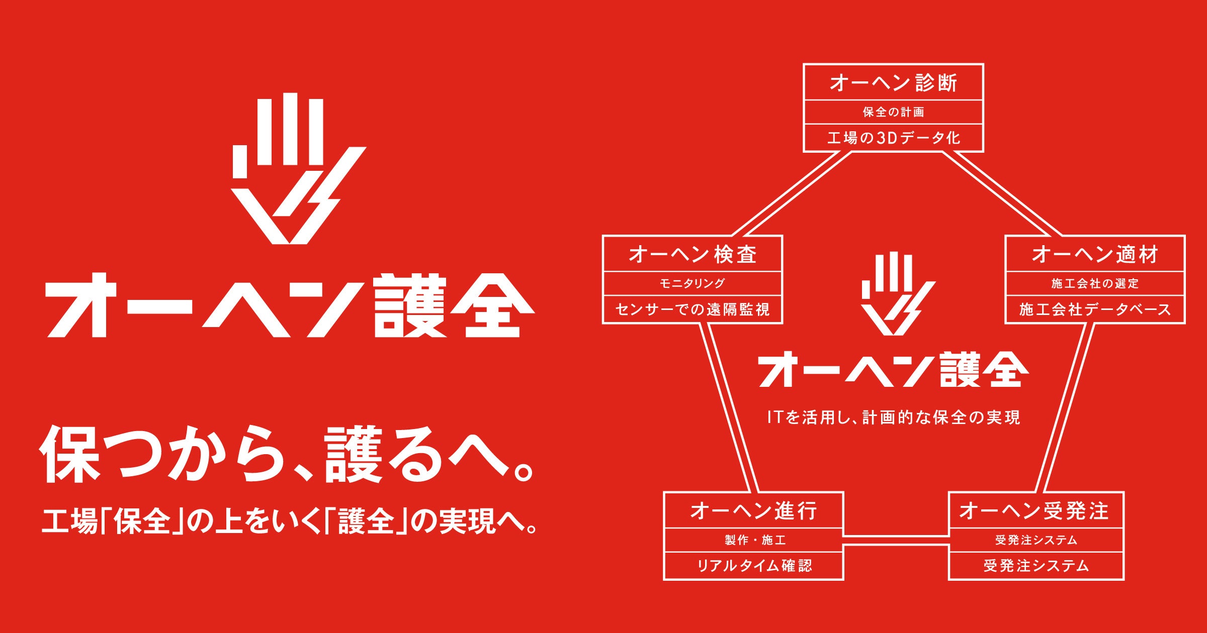 「大型製造工場の"予防保全"を広め工場の健康寿命を延ばして持続可能にする」をミッションに掲げるオーヘン工業(本社:熊本県熊本市、代表取締役:森田悠斗)は、本日1月24日(火)より、新サービスとして、工場の維持計画を作成、施工会社の選定から、受注発注、経過観察まで、大型製造工場の維持管理を行うサービス『オーヘン護全(ごぜん)』のティザーサイトを公開致します。