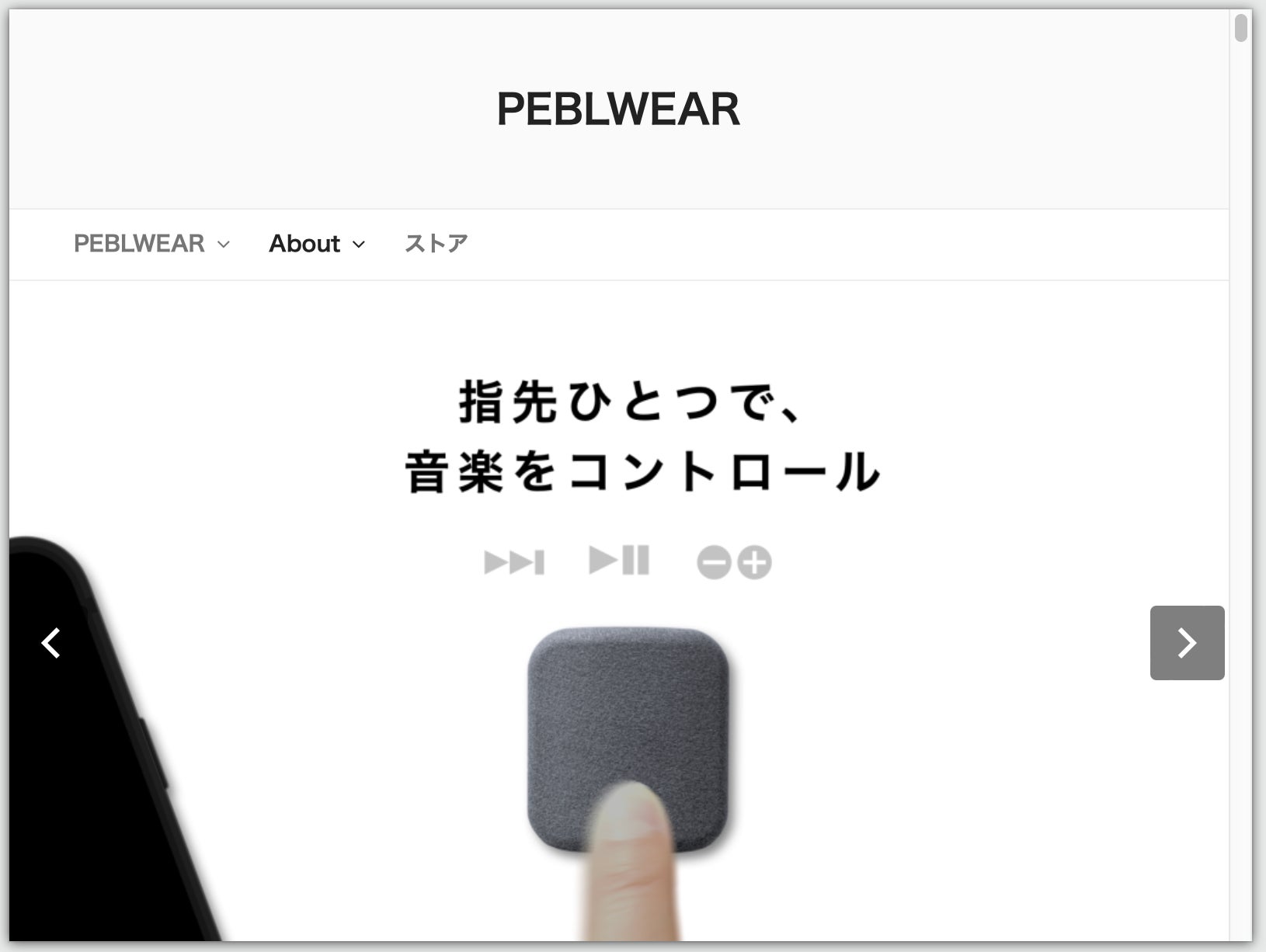 「PEBLWEAR」は現代の音楽体験に残る「もどかしさ」に着目し、いつでも手を移すことができ、指先の動きに絶妙にリンクするサウンドコントロールの実現を目指したミュージックリモコンです。街から山までどんなアクティブシーンでも容易に音楽のコントロールを可能にするため、新感覚の触感タッチテクノロジーを搭載。いまこの瞬間に、ベストな曲を、ベストな音量で。手元を見ずに、指先の小さな動き一つで音楽の操作が可能になりました。