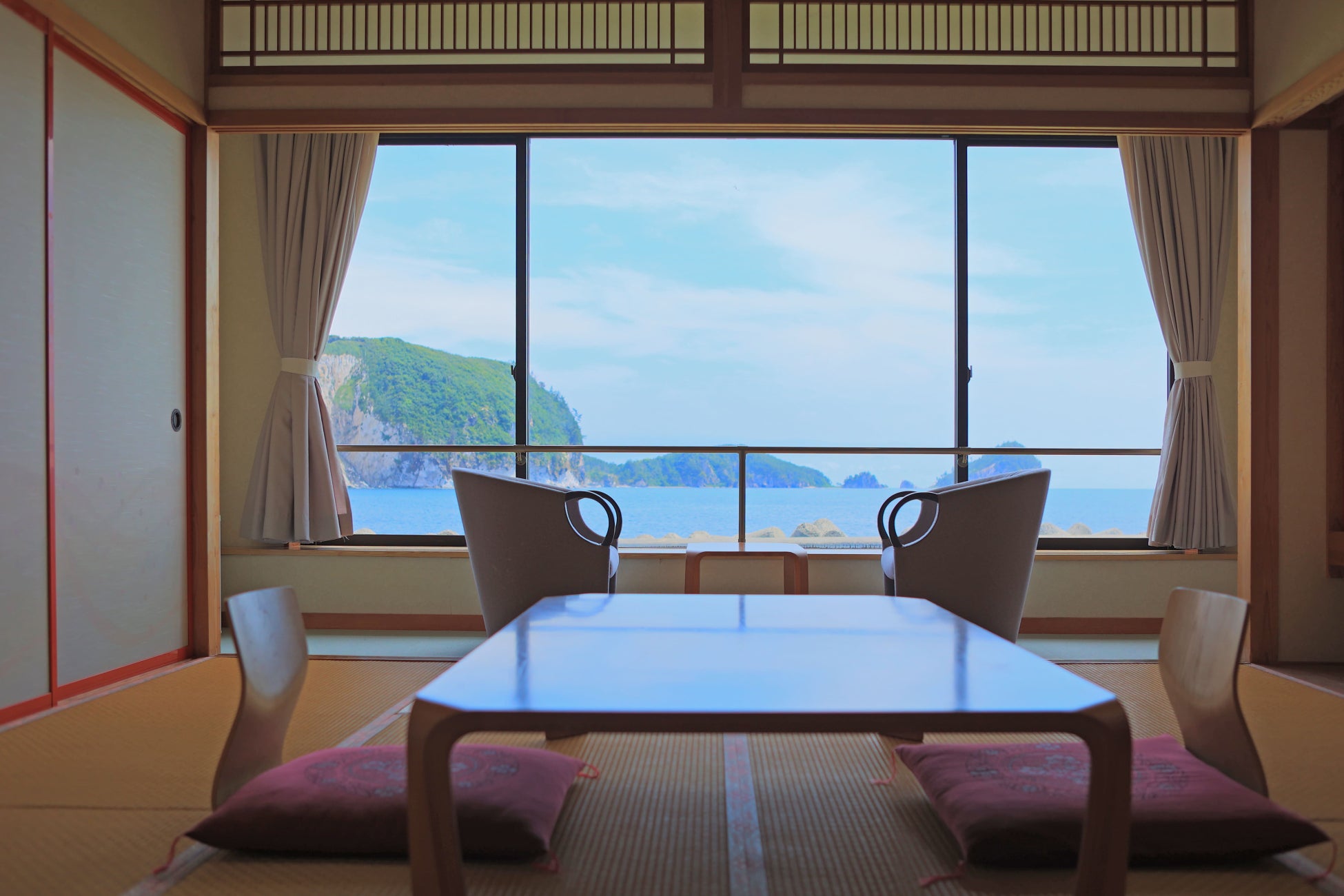 日本海を一望する海辺の場と隠岐近海の魚介類にこだわった料理が自慢の宿。海の向こうには島前が浮かび、夜には水平線の彼方に漁火(いさりび)がロマンチックに輝きます。