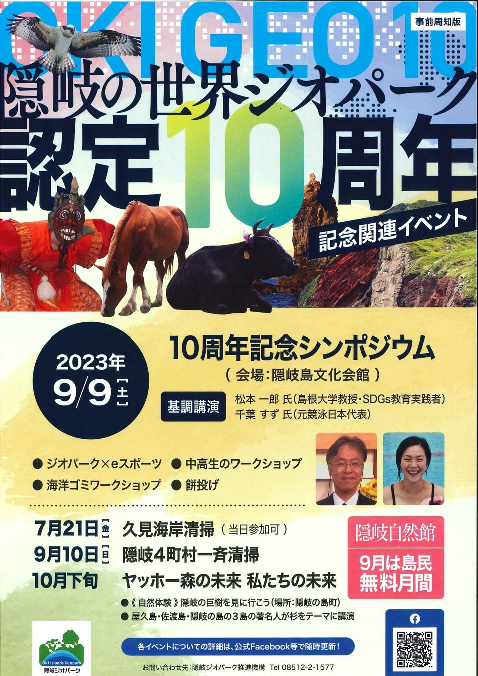 2023年9月9日には、ユネスコ世界ジオパークに認定されて10周年の節目を迎えます。それに伴い隠岐ジオパーク推進機構では、9月9日に地域住民に向けた記念シンポジウムを開催いたします。