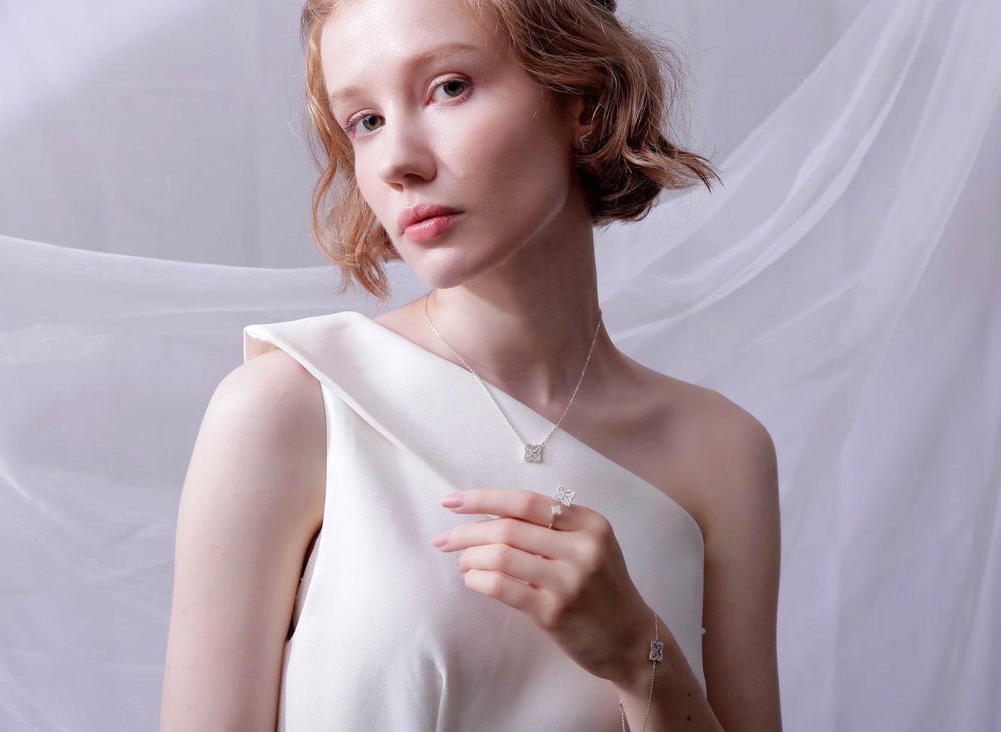 ロナ・パパヴェルの人気シリーズ「Campanula Collection (カンパニュール(キキョウ)コレクション)」から、今回新作として発売される「Classic」コレクションは、高品質で厳選されたフルダイアモンドを贅沢に配し、気品溢れる優美な煌めきを放つデザインに。中央のダイアモンドがより美しく際立つように、石留めにはマーキスカットダイアモンドで爪を小さく設計するなど細部までこだわり、重ね付けにも、ファッションや気分に合わせてシーンレスで着用いただけます。