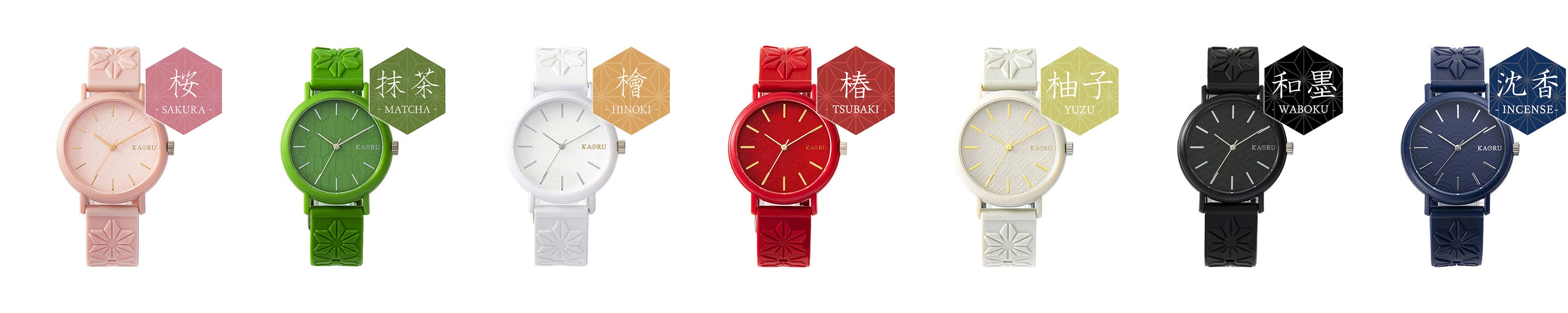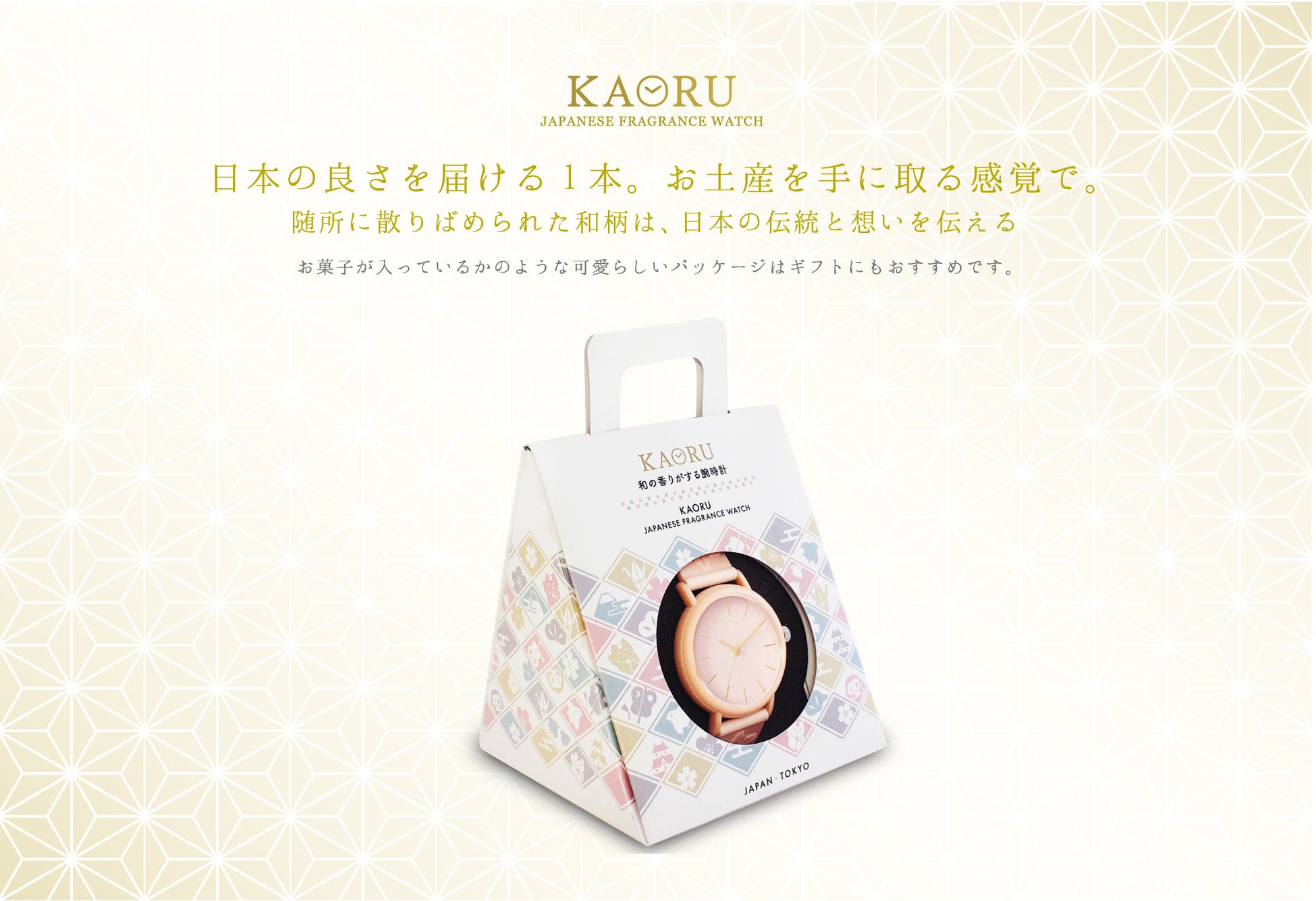 香りに包まれる腕時計ブランド「KAORU(カオル)」。 その中でも、「和の香り」をテーマにした「Originalsシリーズ」と「Localシリーズ」は、 優しくふんわりと「和の香り」が漂う腕時計です。 旅の思い出は、景色だけでなくその場で感じる空気や香りもその一つです。 日本のものづくりの技術と想い、そして日本の香りを海外に向けて発信します。 日本の情景が思い出されるような、気品があってどこか懐かしい、 ほのかな香りをオリジナル調合し、特殊加工を施したベルトにとじ込めました。 日本を代表する心やすらぐ和の香りは、手にされた方の視覚と嗅覚を刺激します。