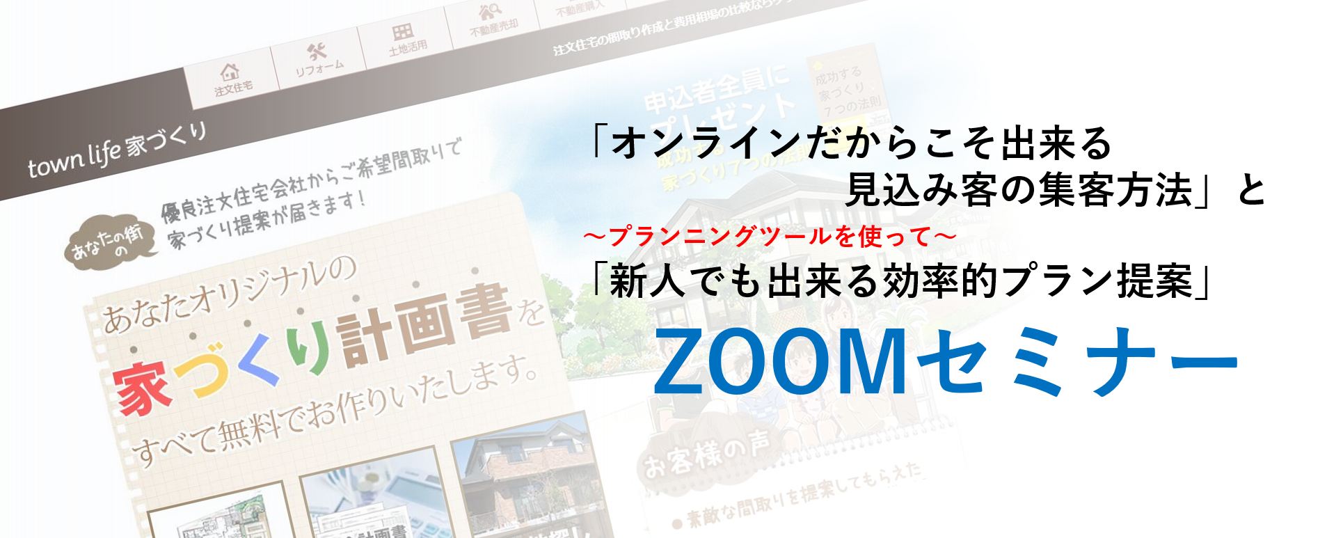 セミナーではタウンライフ側の担当者がネット経由でアプローチしてくる顧客の動向や特徴と対応の成功事例を会員の事例などから紹介し、迅速にプラン提案する手法については(株)ホームプランニング1000ほかで紹介していきます。