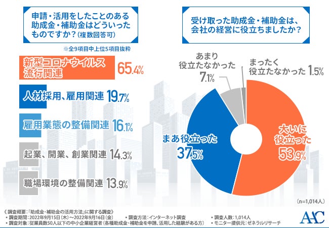株式会社アセットアシストコンサルタント(本社所在地:東京都千代田区、代表取締役:大森 雅美)は、従業員数50人以下の中小企業経営者(各種助成金・補助金を申請、活用した経験がある方)を対象に、「助成金・補助金の活用方法」に関する調査を実施しました。