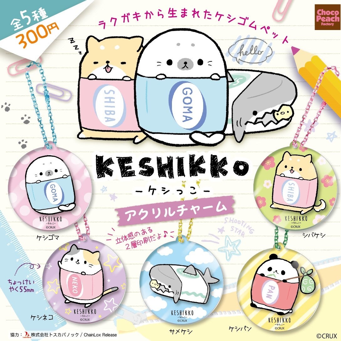 株式会社トスカバノック(本社:東京都千代田区、代表:小峰 信男)は、カプセルトイ販売会社の株式会社ビーム(本社:東京都足立区、代表:花岡 正幸)にて、金属ボールチェーンに変わる新たな吊下げチャームとして、付け外し部材が一体となった「プラスチックチェーン」を業界として初めてご採用頂き、2022年7月から3作品の販売をスタートいたします。