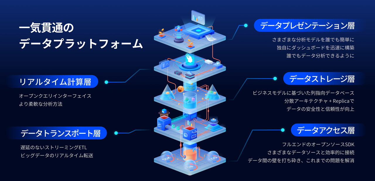 現在のゲームビッグデータ分析プラットフォームはゲームデータ分析そのものに焦点を当てています。間もなく発表される新製品は全面的なゲームデータへアクセスする生態系を構築し、ゲームデータ分析からゲームのスマート運営までのクローズドループドリブンを実現します。