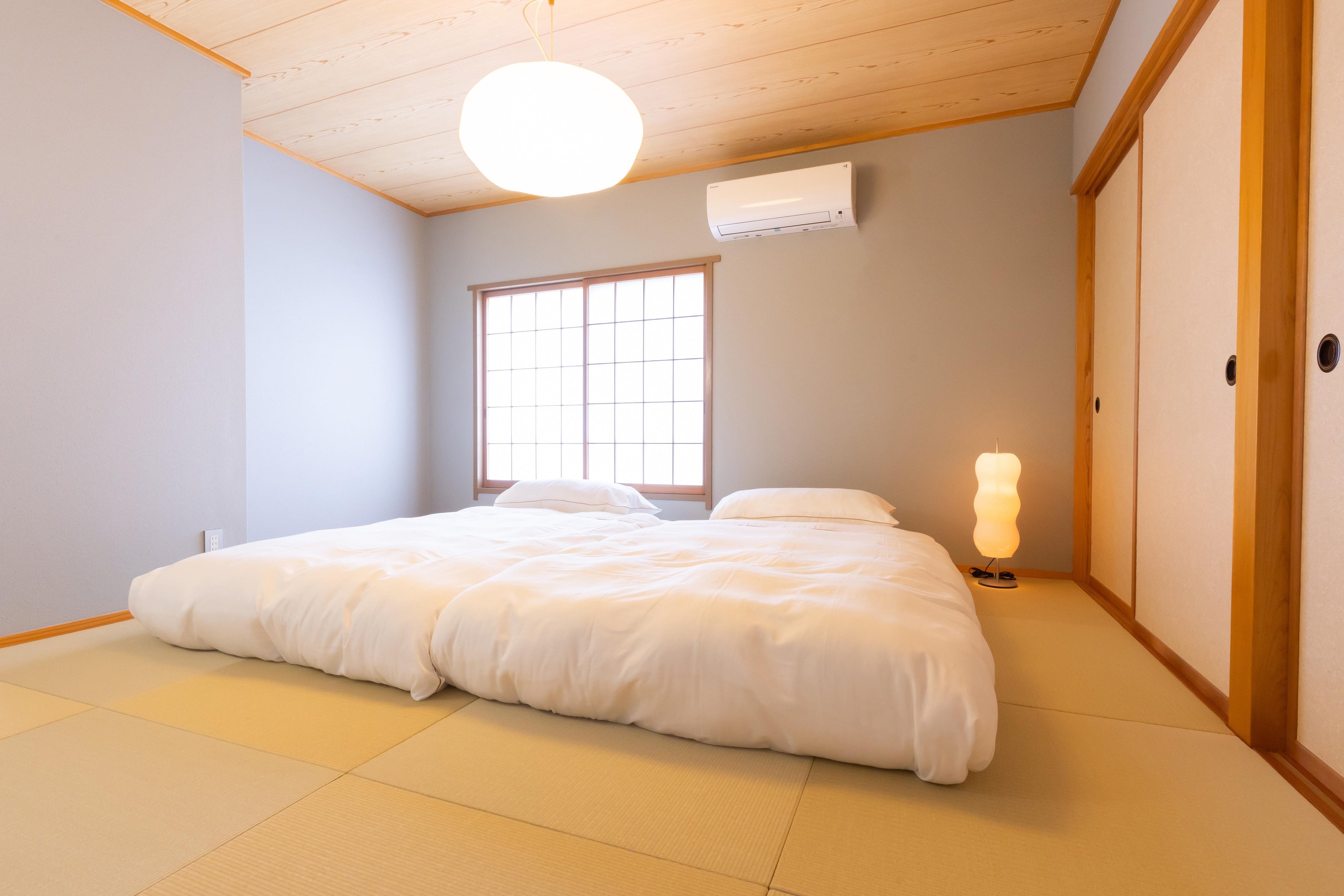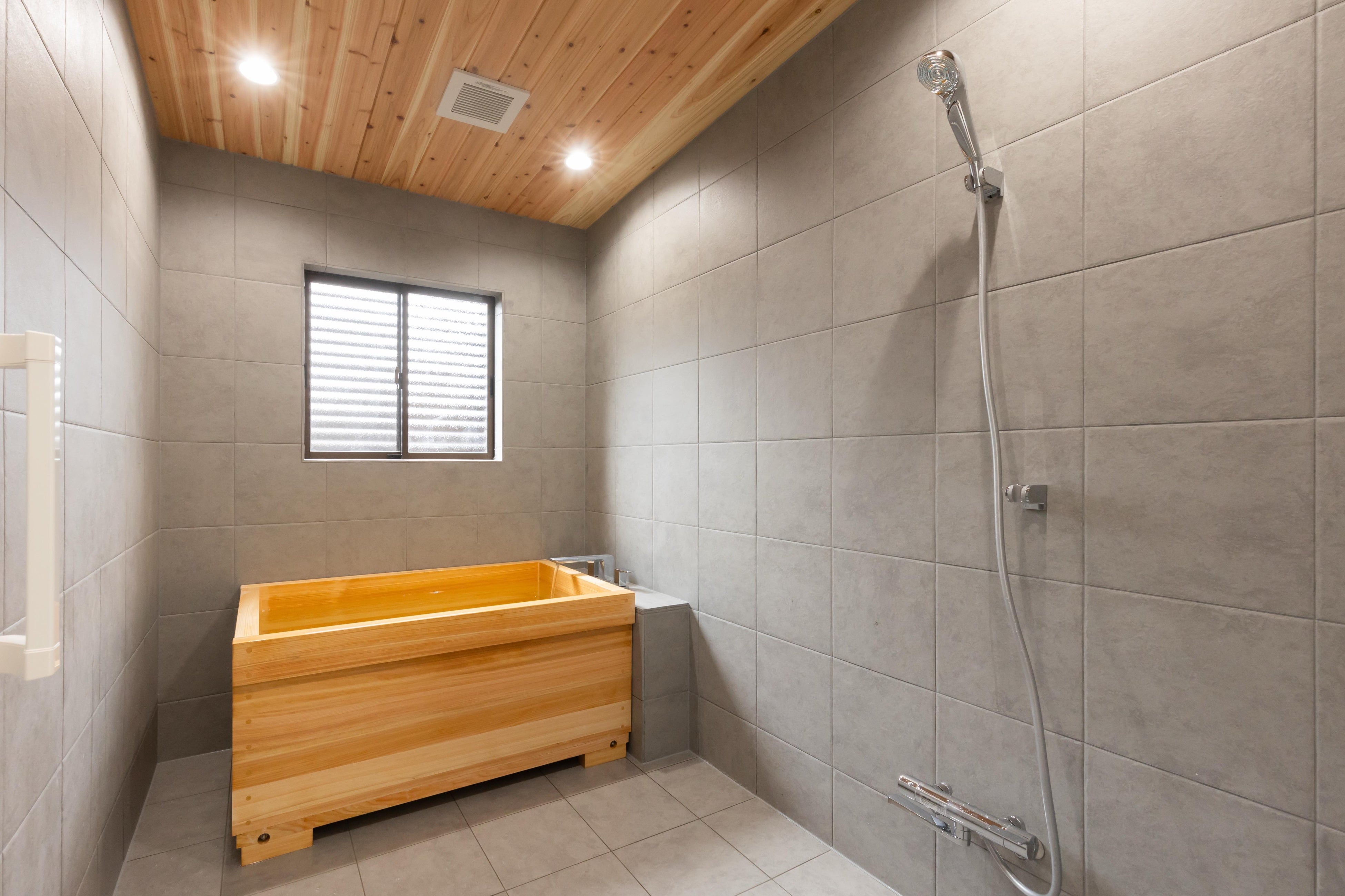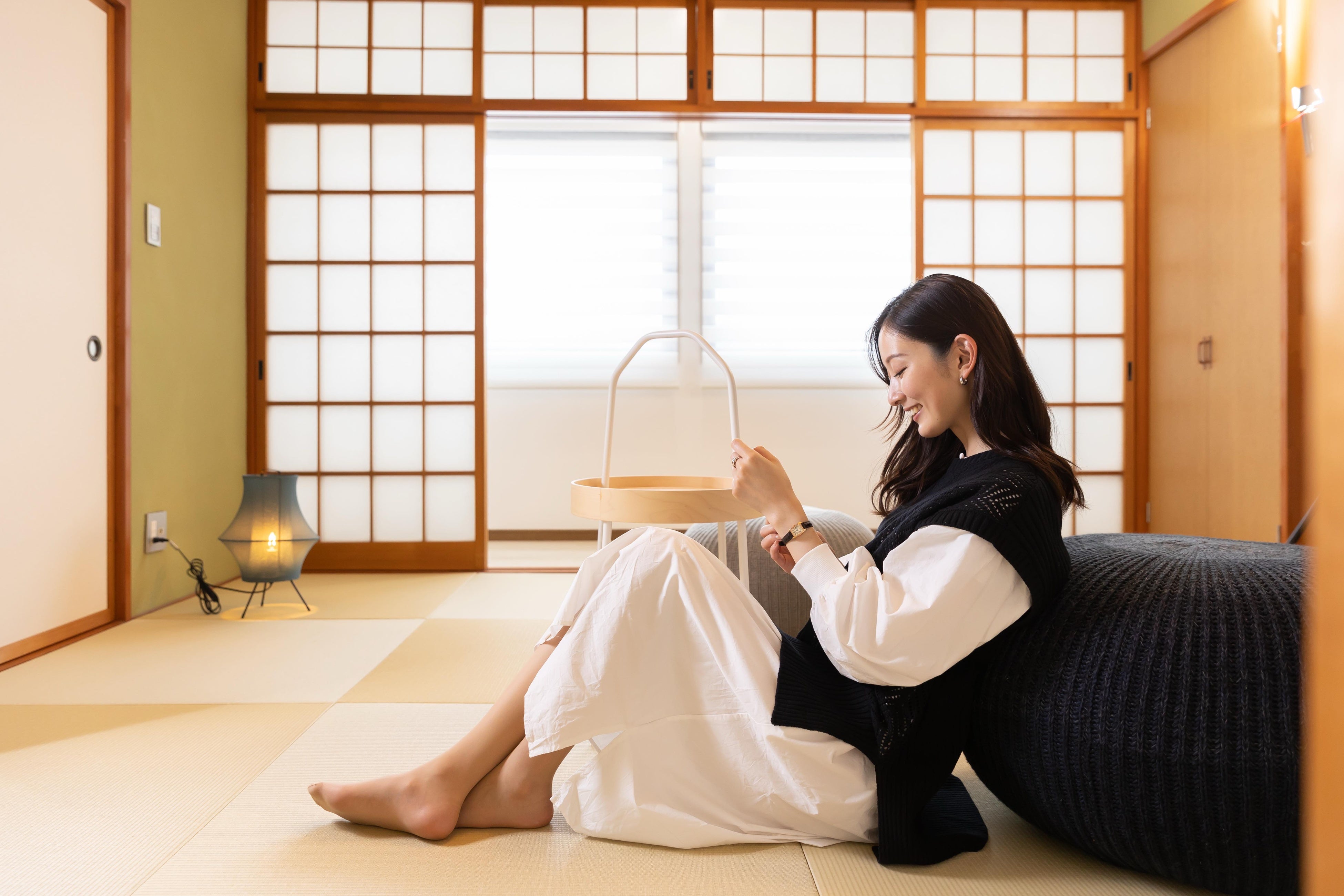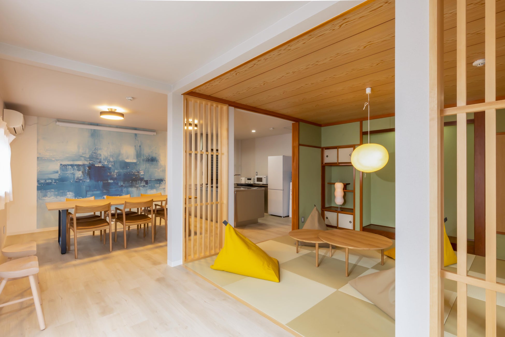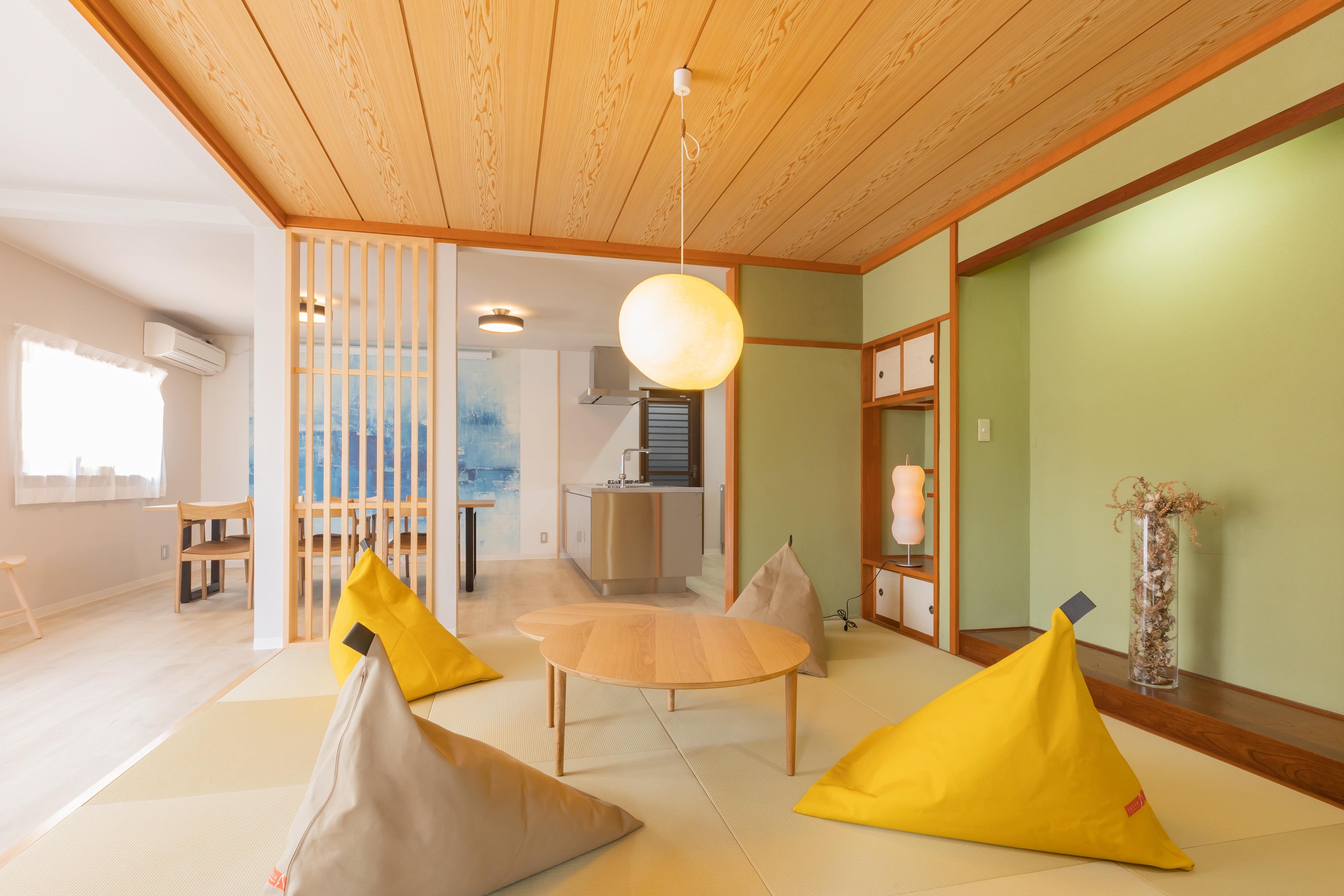 開業した新スタイル旅館では、玄関ドアには宿泊者それぞれに自動で割り当てられた暗証番号キーを入力して入室するIoT技術を取り入れ、広々としたリビングに琉球畳を配した和室、温泉記号発祥の地である磯部温泉のロゴをあしらった卓球ルーム、BBQ が楽しめるウッドデッキなど、お客さまだけのプライベート空間を守れる宿泊スタイルを実現しています。