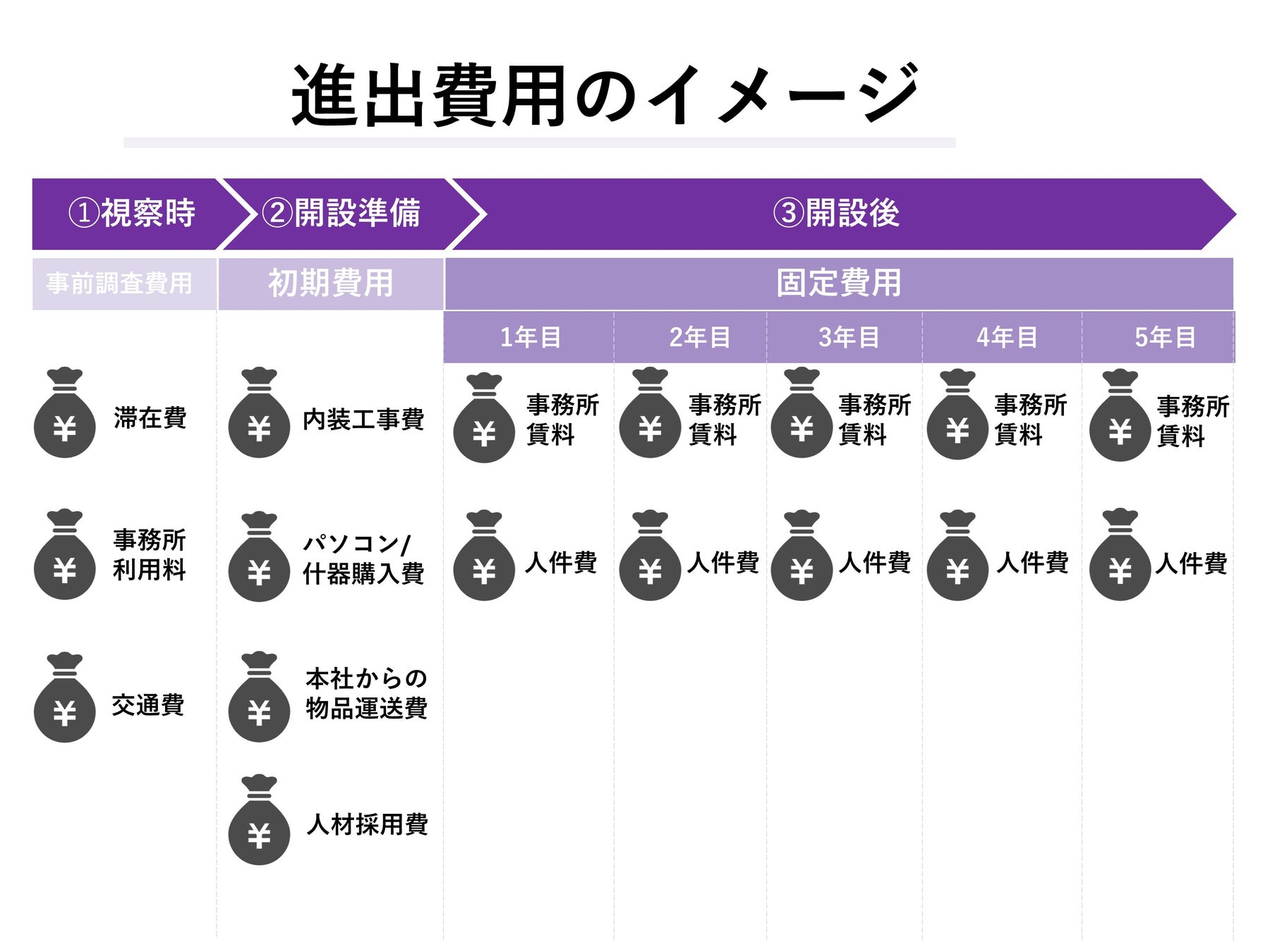 進出後の固定費用は主にオフィス賃料、人件費と考えると、