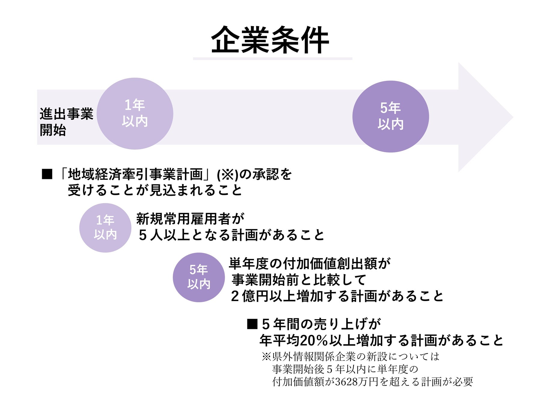 企業条件は地域経済牽引事業計画や新規常用雇用者の人数、付加価値創出額、売り上げなど