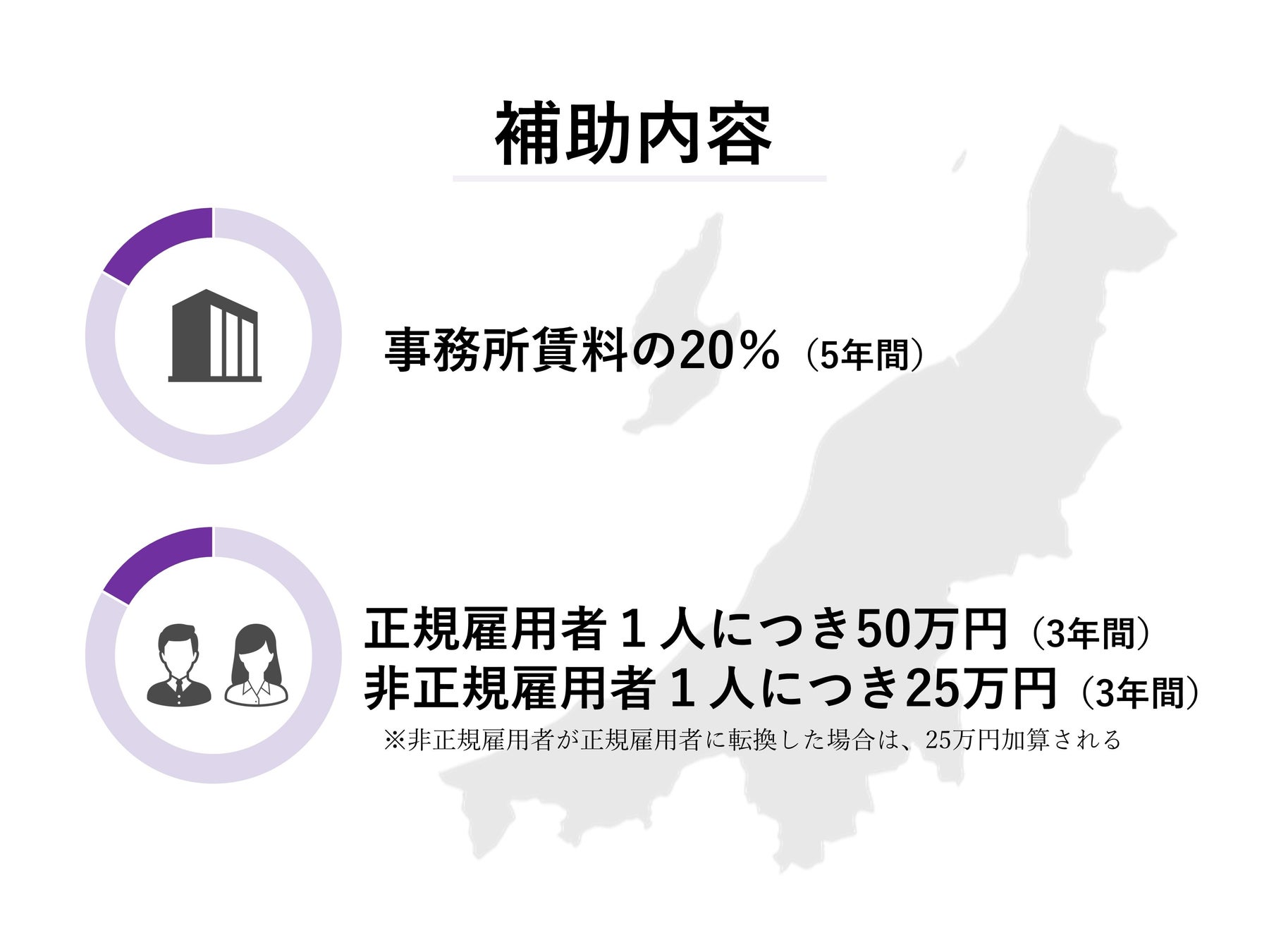 継続的な雇用の創出を目的としており、事務所賃料に対する補助の他、