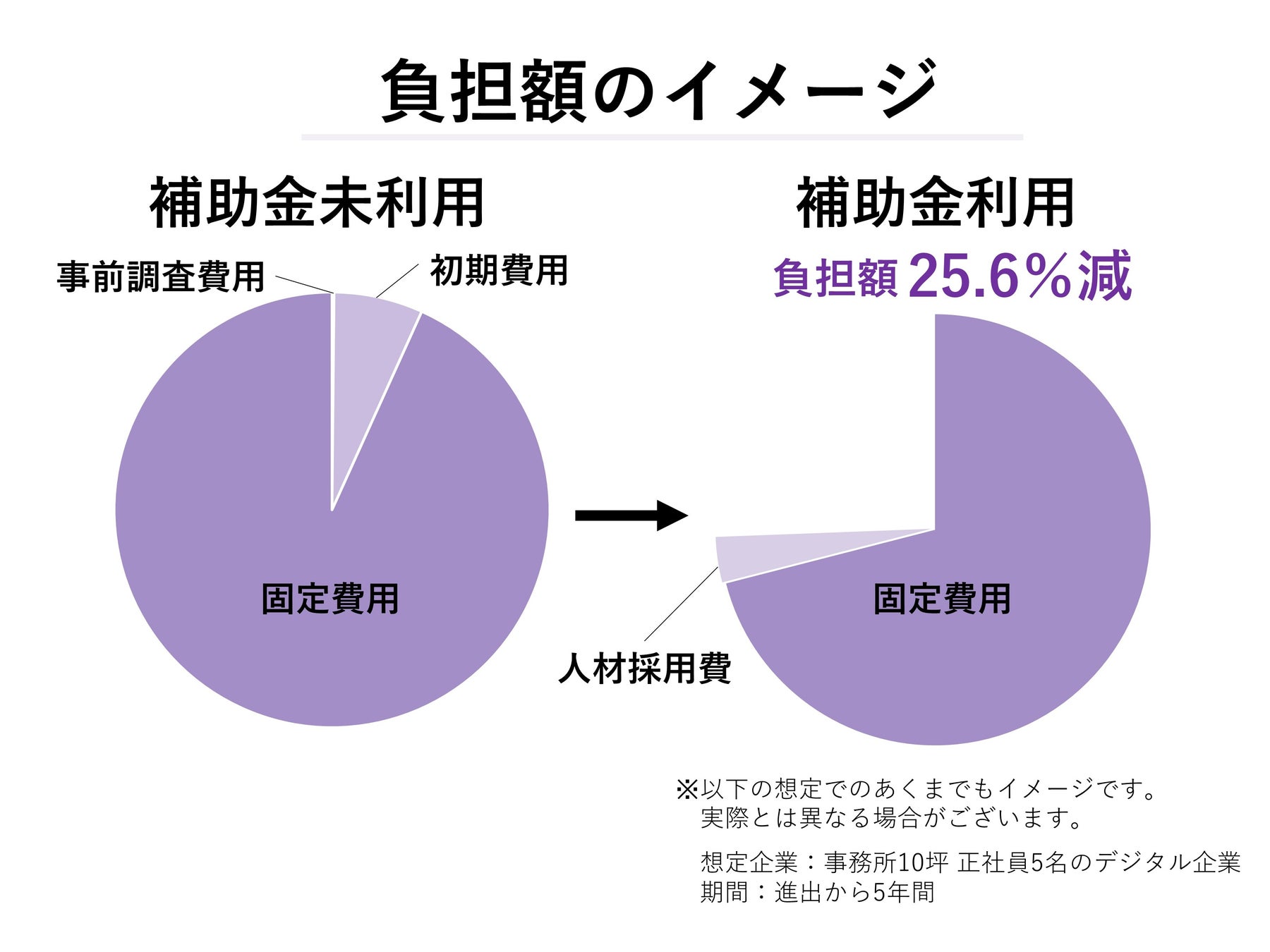 事前調査費用と人材採用費を除く初期費用の全てと、人材採用費の20%、固定費用内の事務所賃料60%、