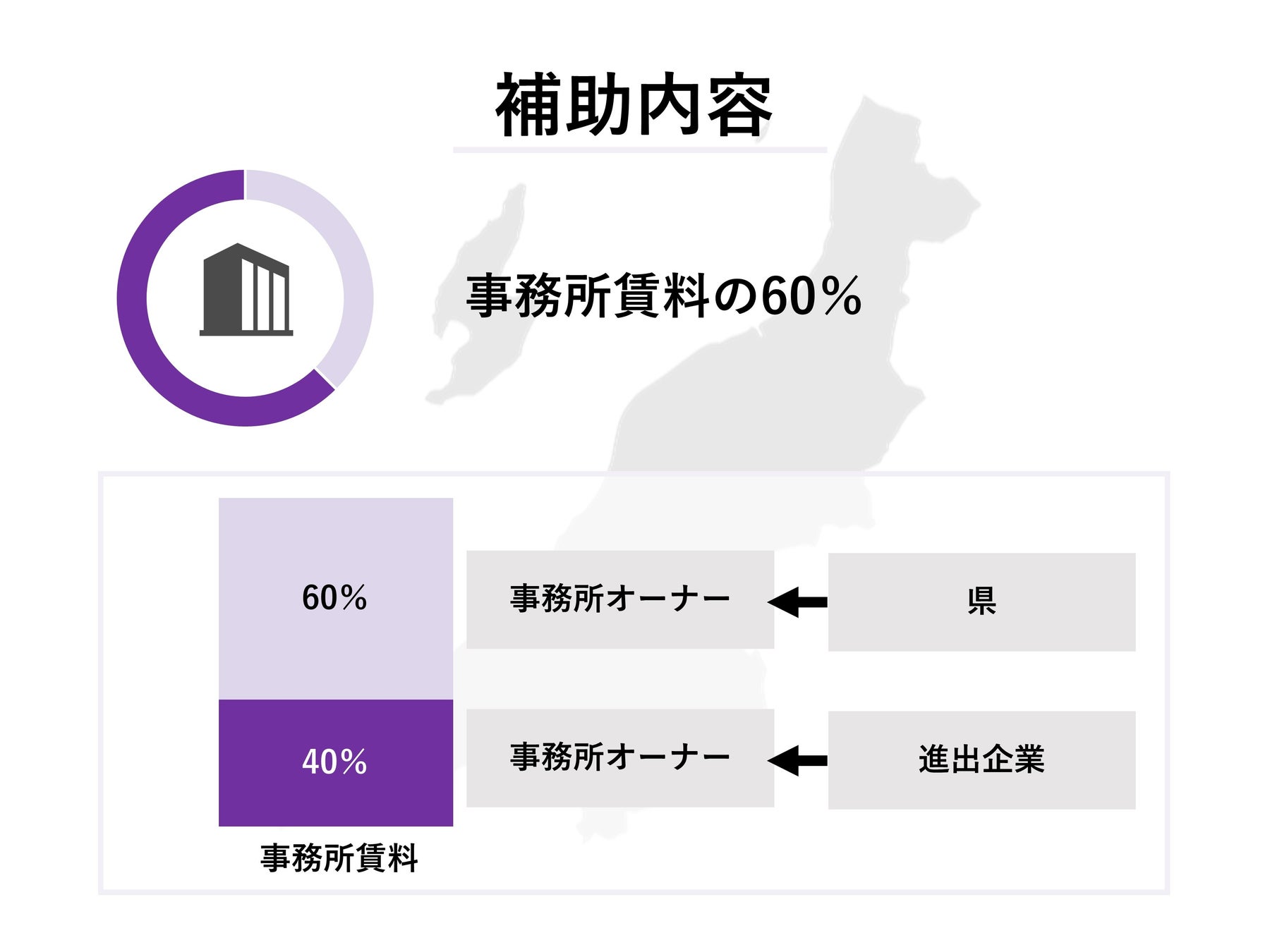 進出企業が事務所オーナーに支払う金額は、事務所賃料の40%です。