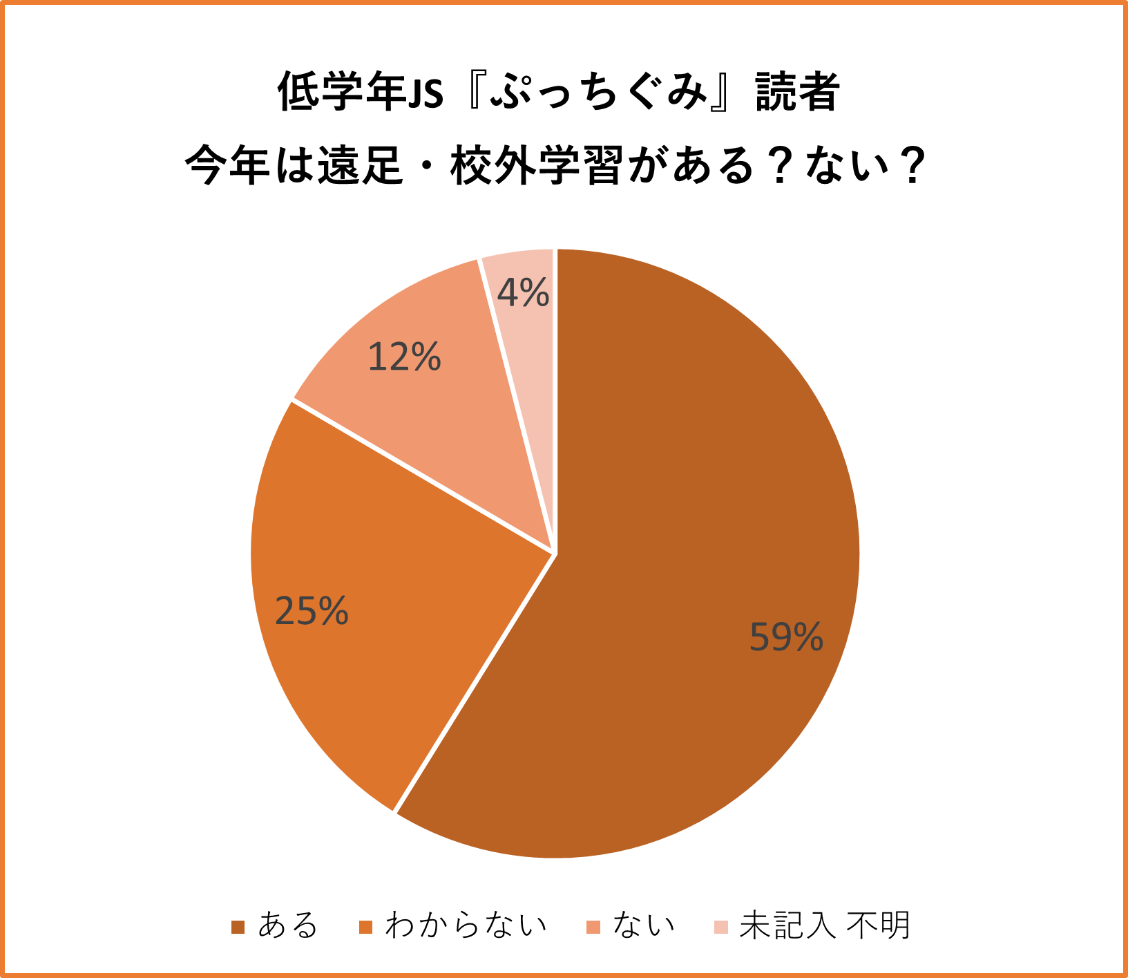 ① 今年遠足や校外学習があるJSは全体の約70%。行き先は公園が中心に