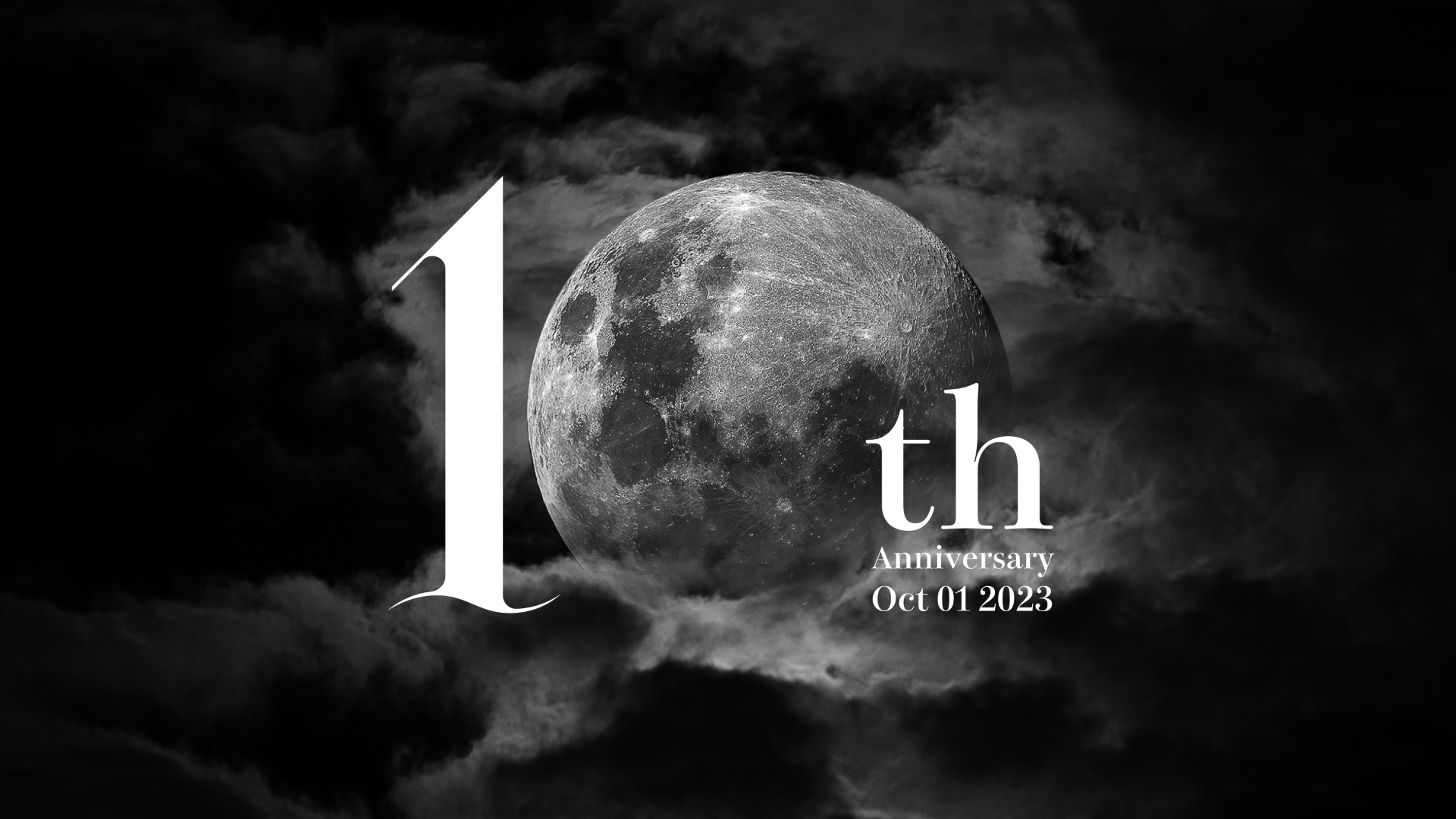 クレーターの由来となる月を模った10周年ロゴマークです。夜空に輝く月を浮かべ、お客様のプロダクトやサービスを月明かりで照らせるように、世に輝かせるように、という想いを込めております。