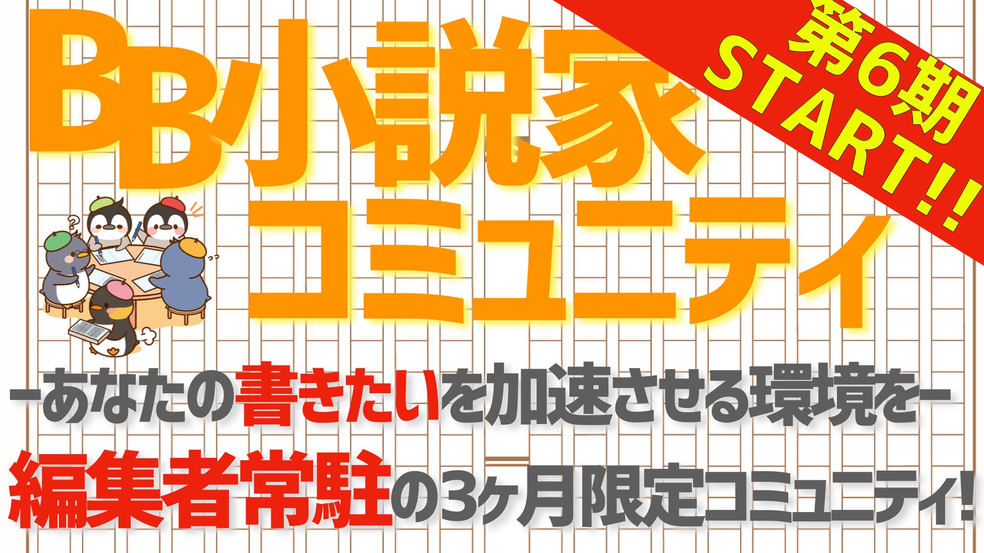 国内最大級の小説家向けオンラインコミュニティ!『BB小説家コミュニティ』の第6期が開始!過去最大120名!累計480名突破!
