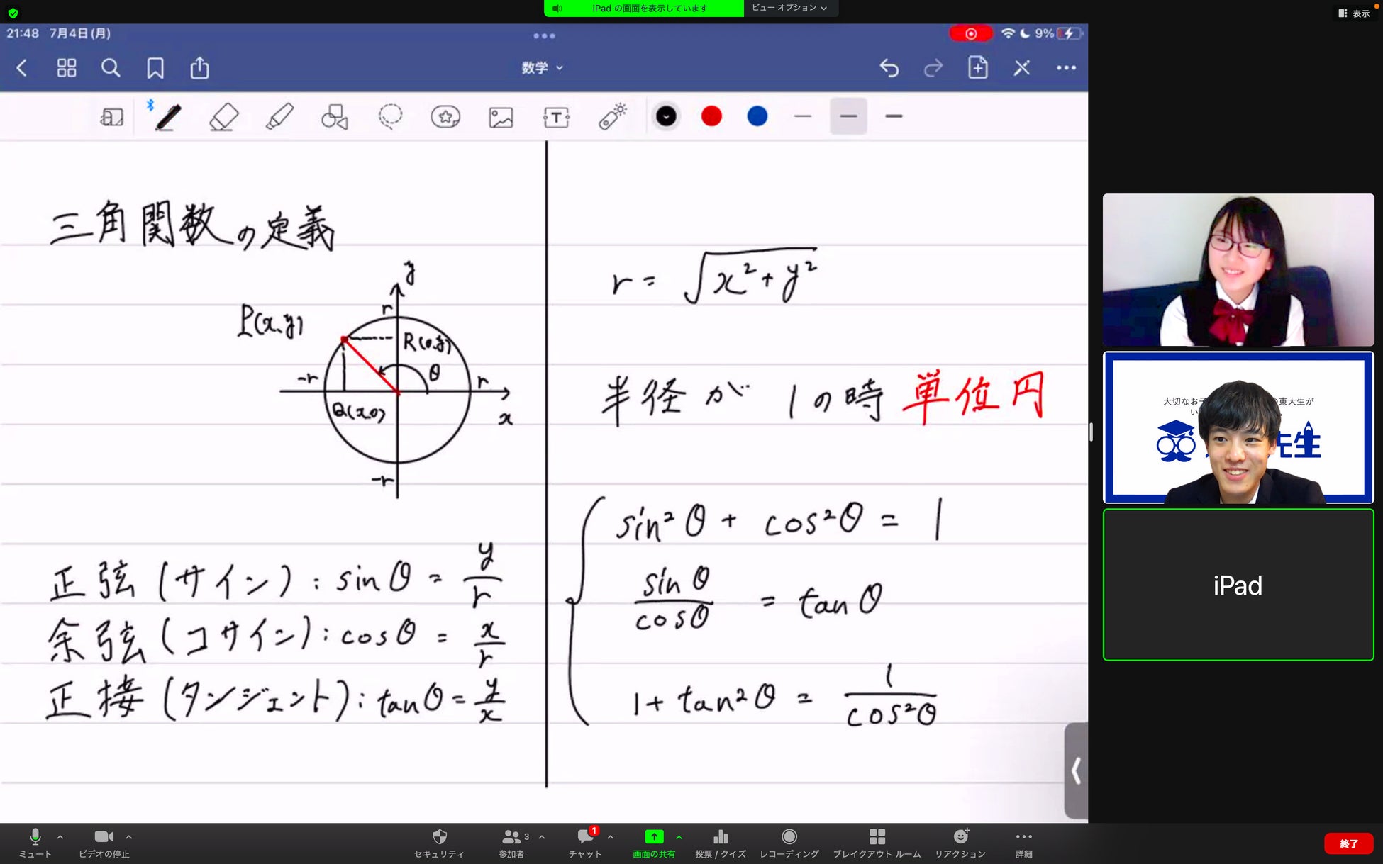 授業はオンライン会議アプリZoomを使って行います。お互いに顔が見えるので、安心して授業にのぞめます。