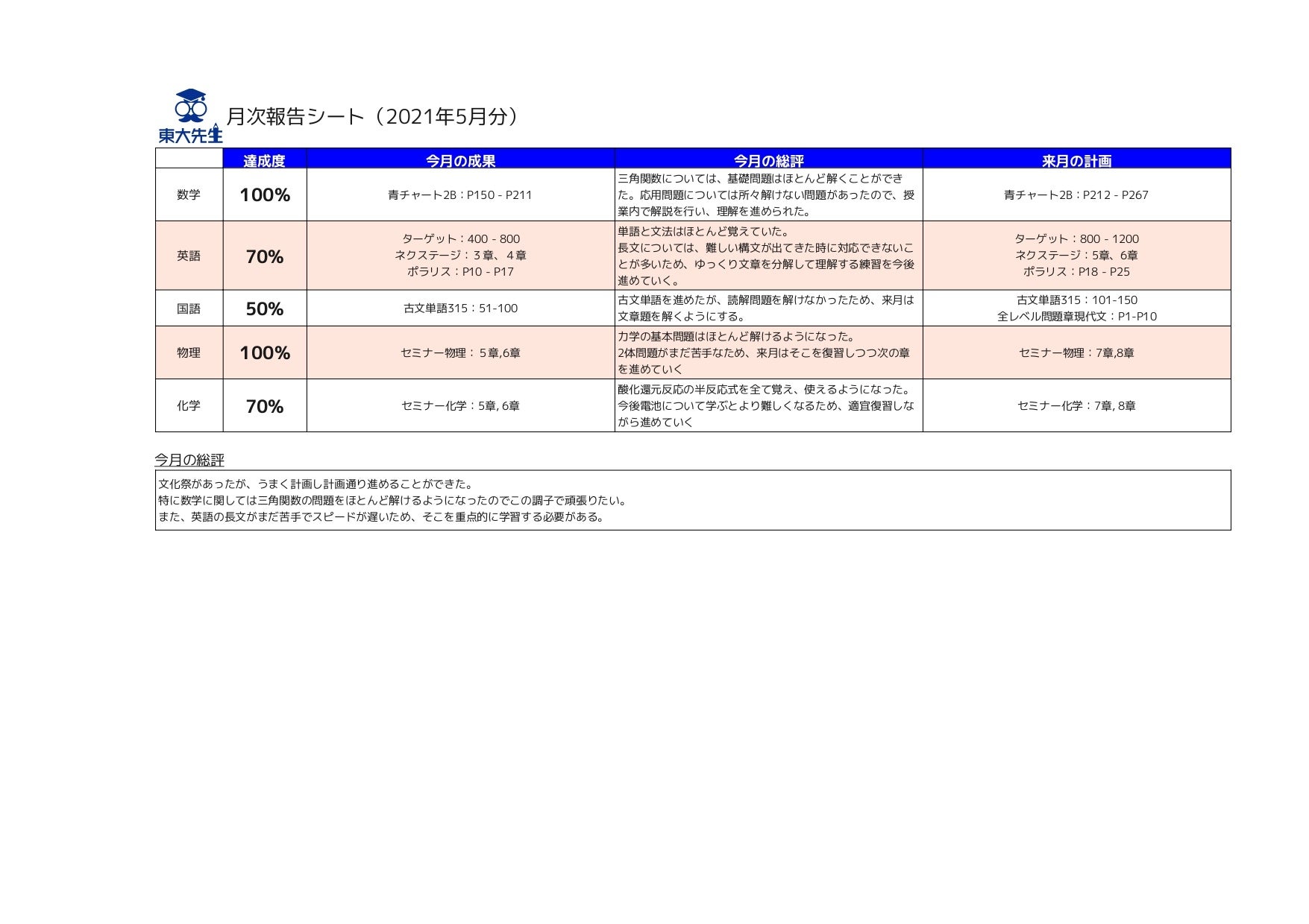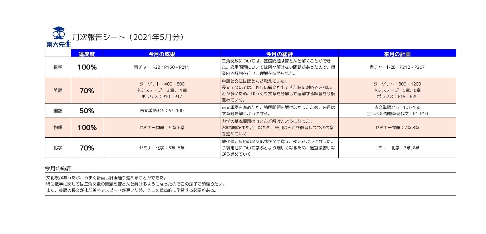 2. 受験のプロである東大先生による指導を通じて日々の学習を徹底サポート、成長と課題を分析し、毎授業後と月末にフィードバック