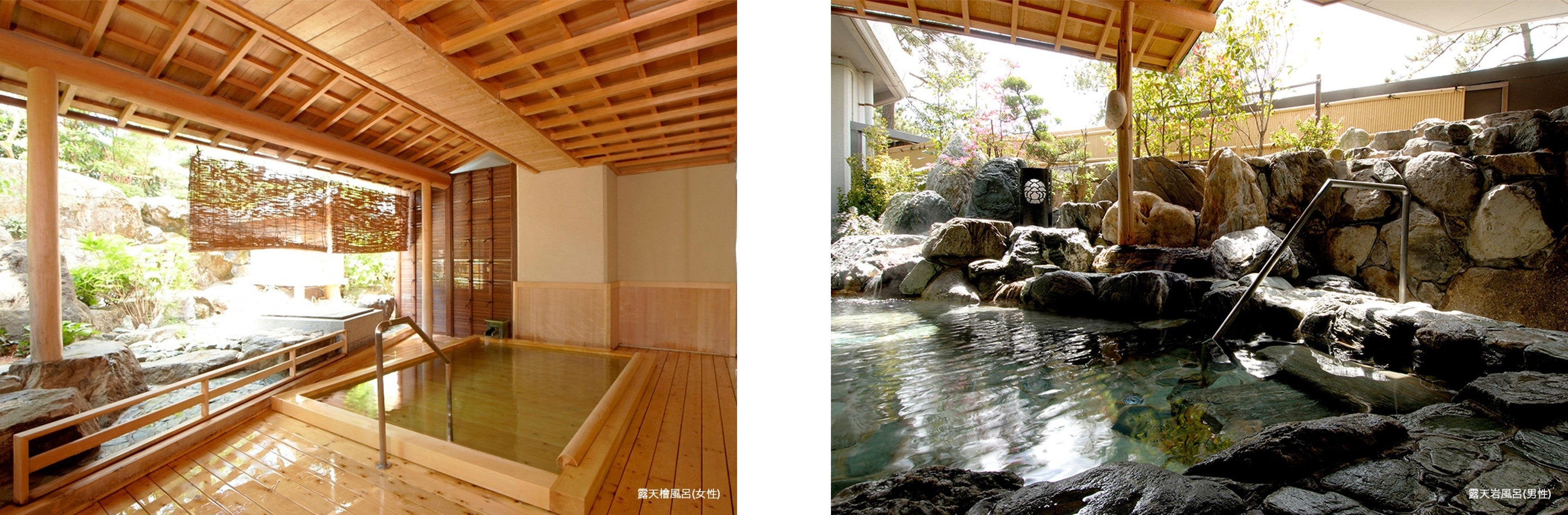 ※たまの温泉(写真左:女性檜露天風呂・右:男性岩露天風呂)