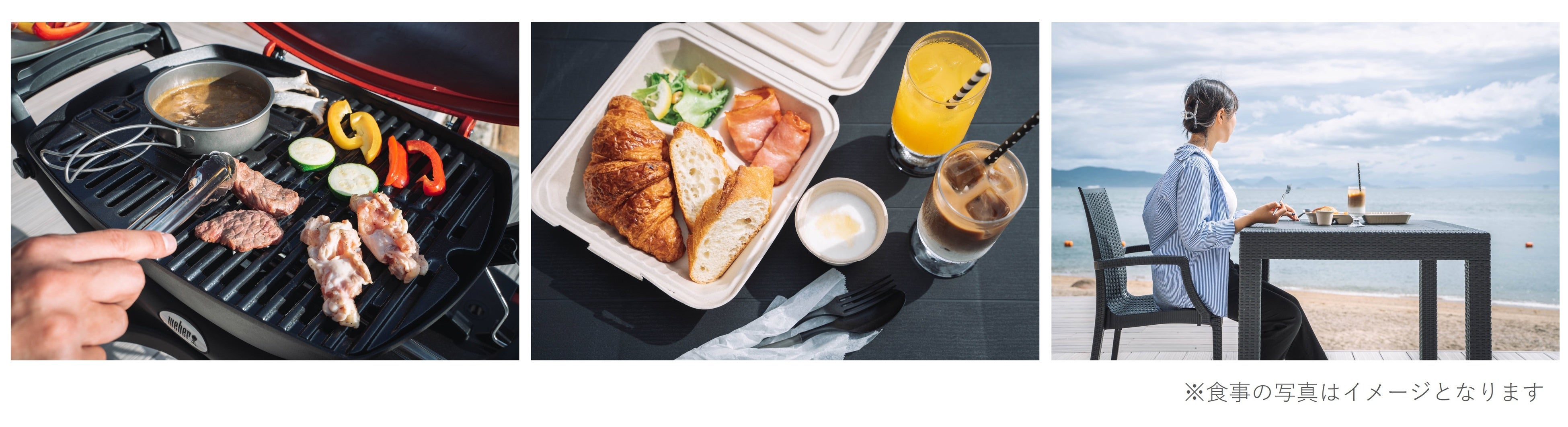 朝食には「てんとうみ」オリジナルヨーグルトや瀬戸内レモンのサラダなどをバスケット片手に浜辺をピクニックしながらお好きなスポットで食べていただく「てんとうみ」SEA PICNICメニューをご用意しております。