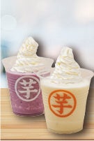 芋のペーストがとプリンが二層にわかれており、中には角切りのりんごが入 っています。りんごの食感と二つの味が楽しめます。