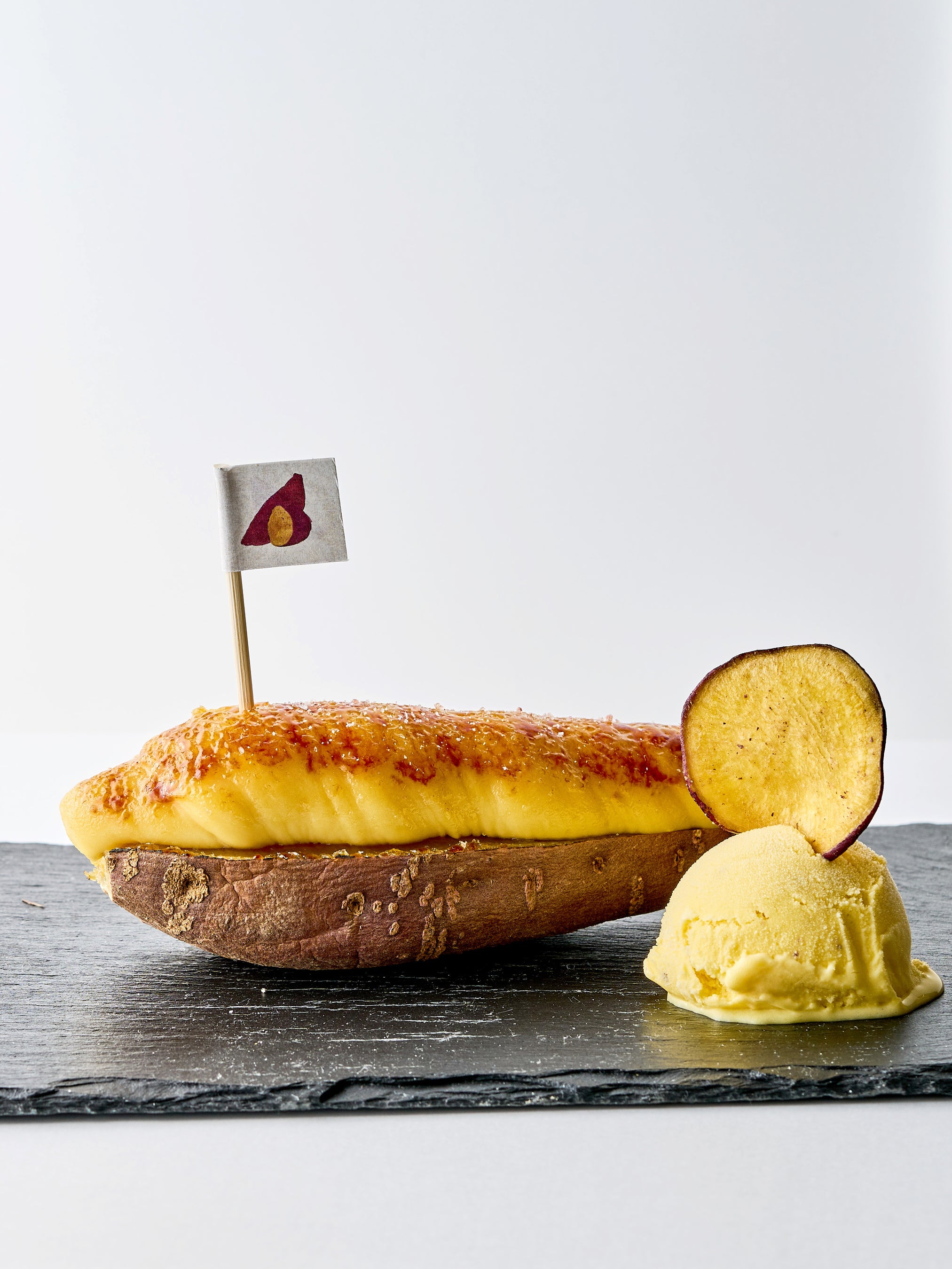 甘味と塩味のバランスが絶妙な、“をかしな”芋ブリュレです。