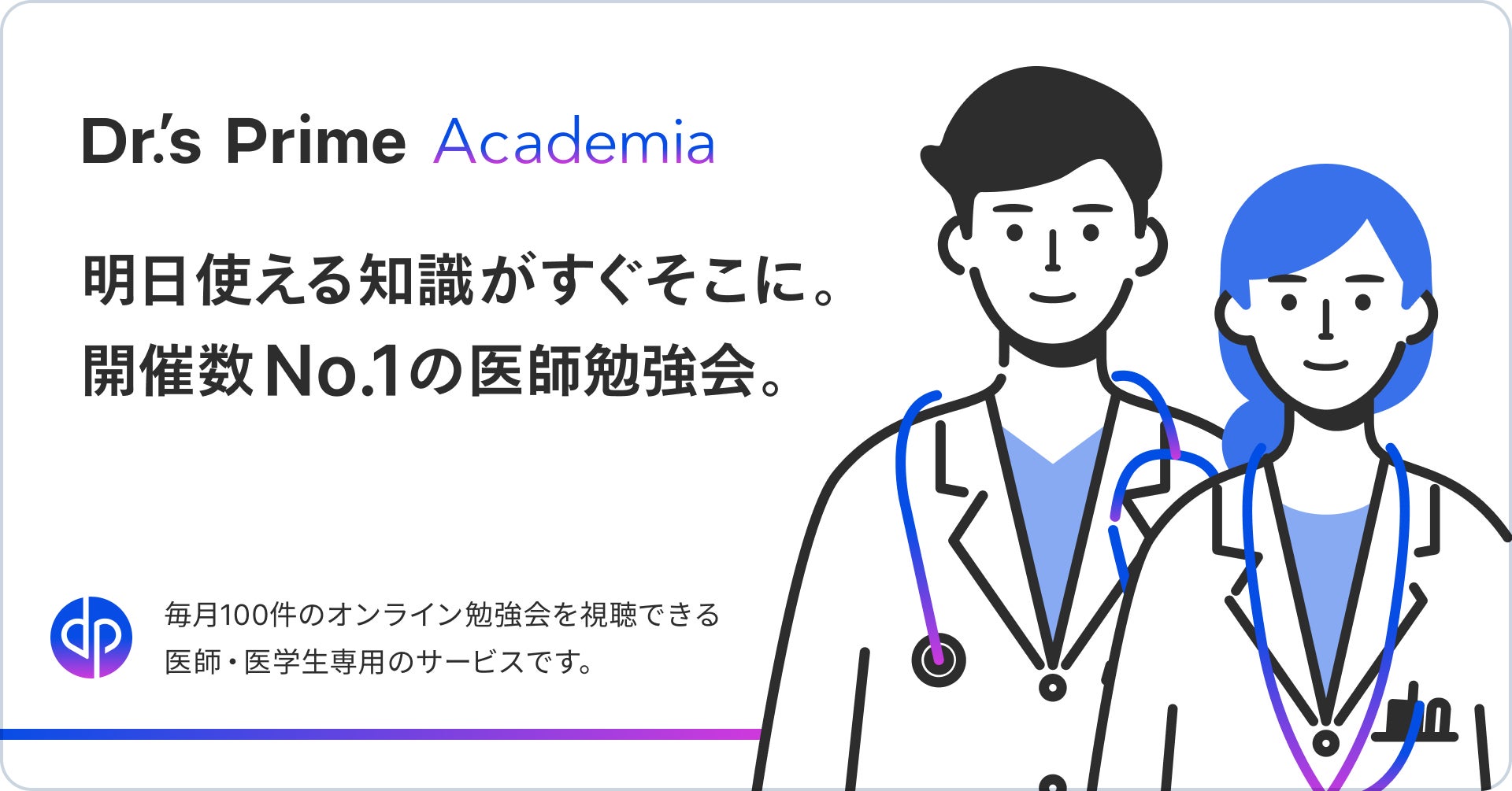 医療スタートアップの株式会社ドクターズプライム(本社:東京都台東区、代表取締役:田 真茂)は、2022年7月6日に、毎月100件の勉強会が視聴できる医師向けサービス「Dr.’s Prime Academia(ドクターズプライム アカデミア)」の正式提供を開始しました。サービスサイト:https://drsprime.com/service/academia