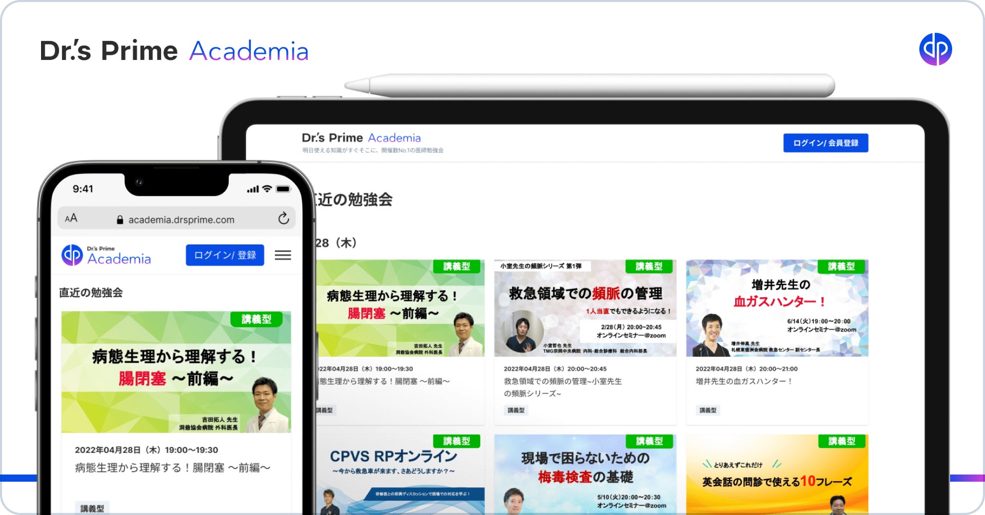 月100件の勉強会が視聴できる医師向けサービス「Dr.’s Prime Academia」を正式ローンチ。勉強会登壇・参加医師への価値提供を目指し、出版社などパートナー企業の募集も開始