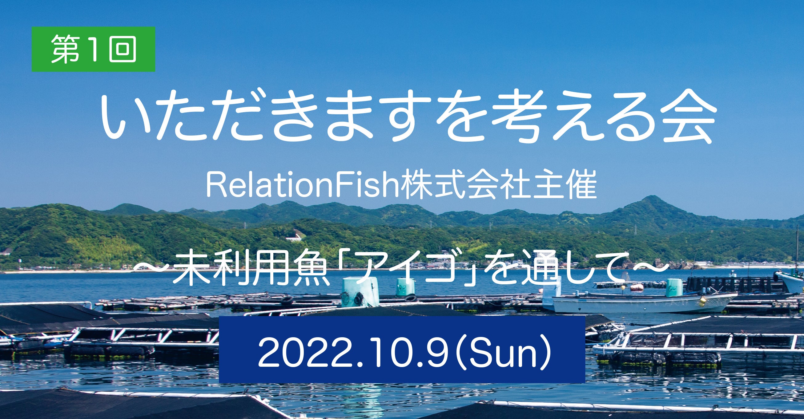 RelationFish株式会社は、未利用魚であるアイゴを通して、持続可能な食を考えるイベント「いただきますを考える会2022」を、10月9日に大阪市西区で開催します。魚をきっかけとして繋がり、仲間と「思いを紡ぎ、 命を紡ぐ」そんな「食」の明るい未来の為に、皆が協力できる体制を作りたいと願い開催します。