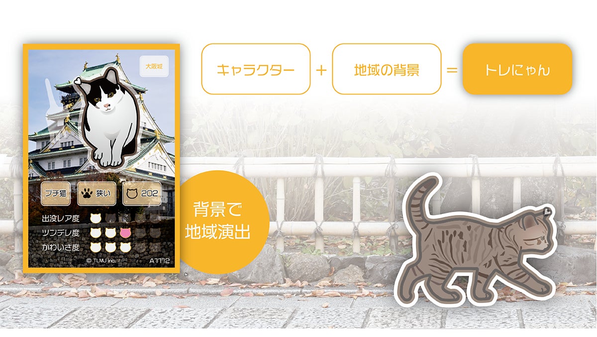トレカは地域の名所や風景を背景にキャラクターたちが描かれており、楽しみながらコレクションできるようなデザインです。近隣や遠方の地域の「トレにゃん」たちを集め、それぞれの地域を背景にしたキャラクターたちを楽しむことが可能です。この「トレにゃん」企画は、イベントのパッケージやアイテムとして継続的に提供する予定です。ご要望に応じて地域の名所や風景を背景としてカスタマイズする事ができます。
