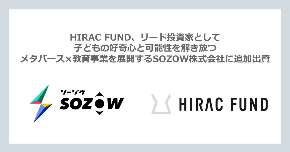 HIRAC FUND、リード投資家として子どもの好奇心と可能性を解き放つメタバース×教育事業を展開するSOZOW株式会社に追加出資