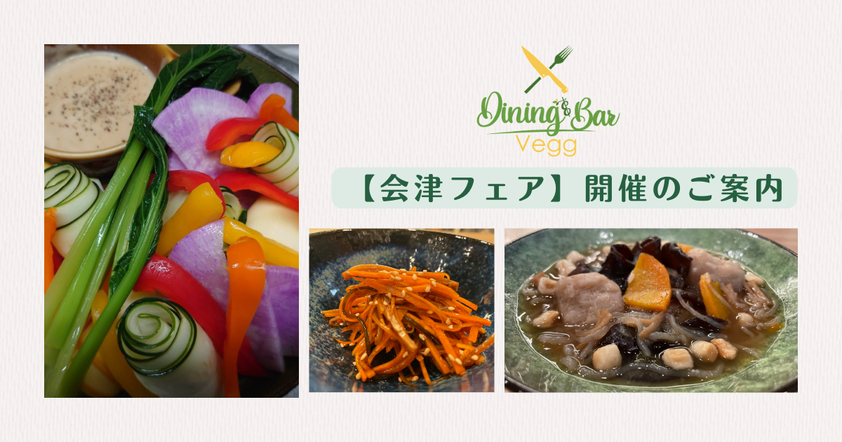 産地直送野菜と厳選卵をコンセプトとした「Dining&Bar Vegg(ベッジ)」は、10月3日(月)〜 10月31日(月)まで「会津フェア」を開催いたします。