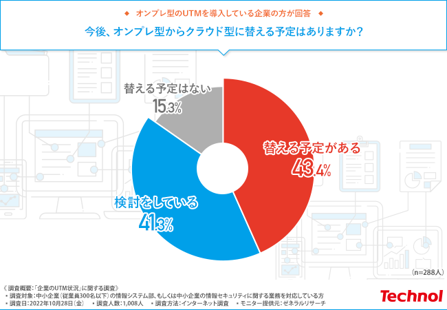 8割以上の中小企業で、UTMをオンプレ型からクラウド型に替える可能性が高いと考えられます。