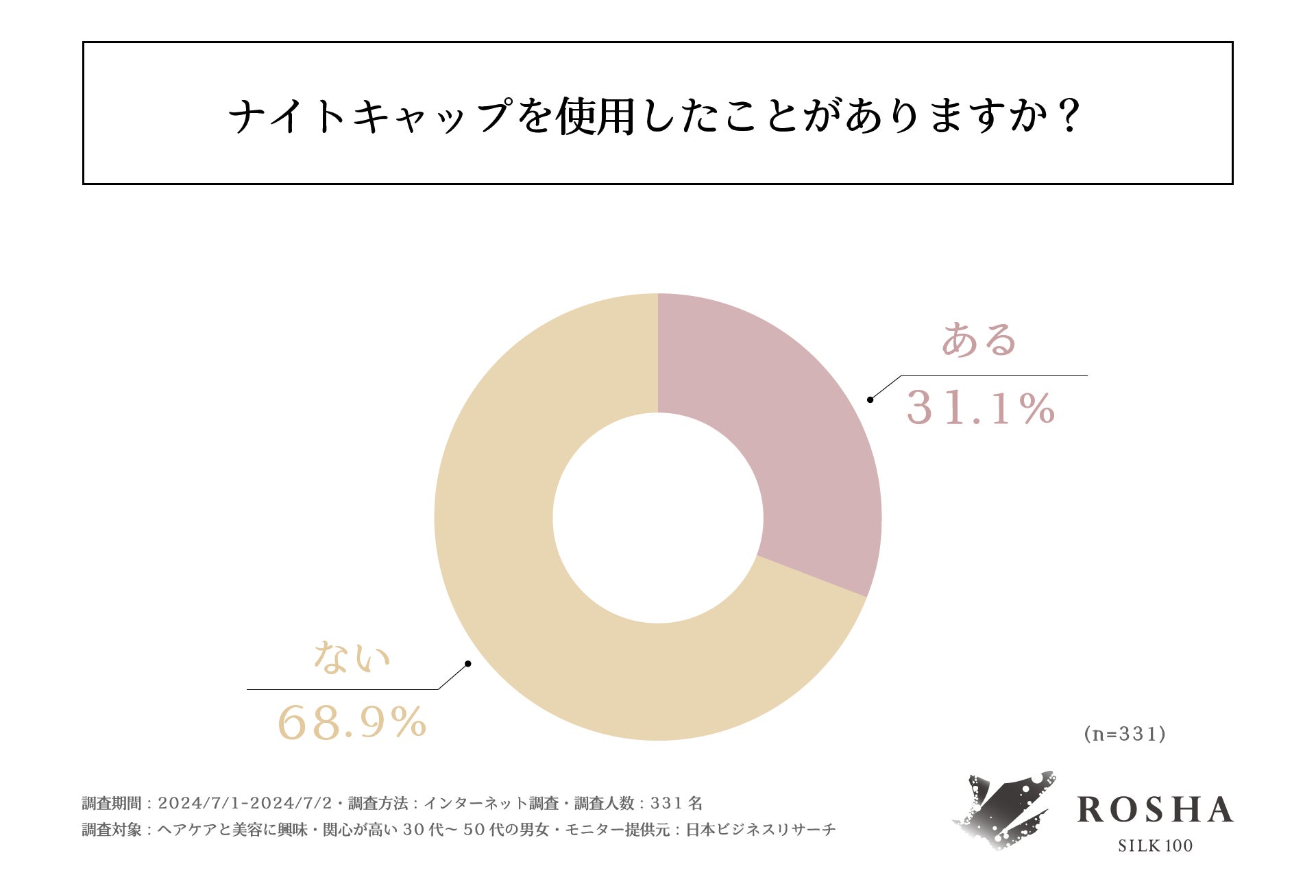 まず、「ナイトキャップを使用したことがあるか」を尋ねる設問への回答では、「ない」が68.9%、「ある」が31.1%という結果になりました。この結果から、3割程の方がナイトキャップを使用したことがある、という事実が明らかになりました。