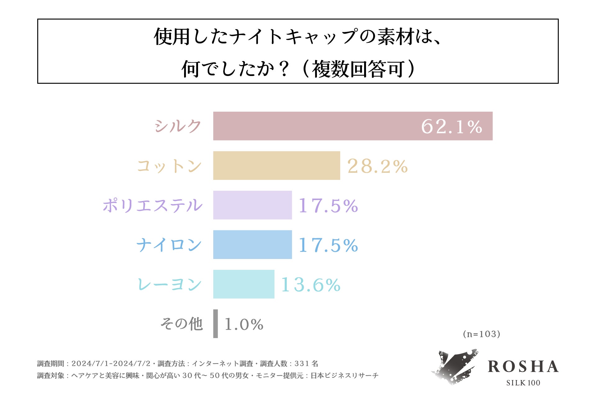 ・ナイトキャップの素材では圧倒的に「シルク」が支持されている