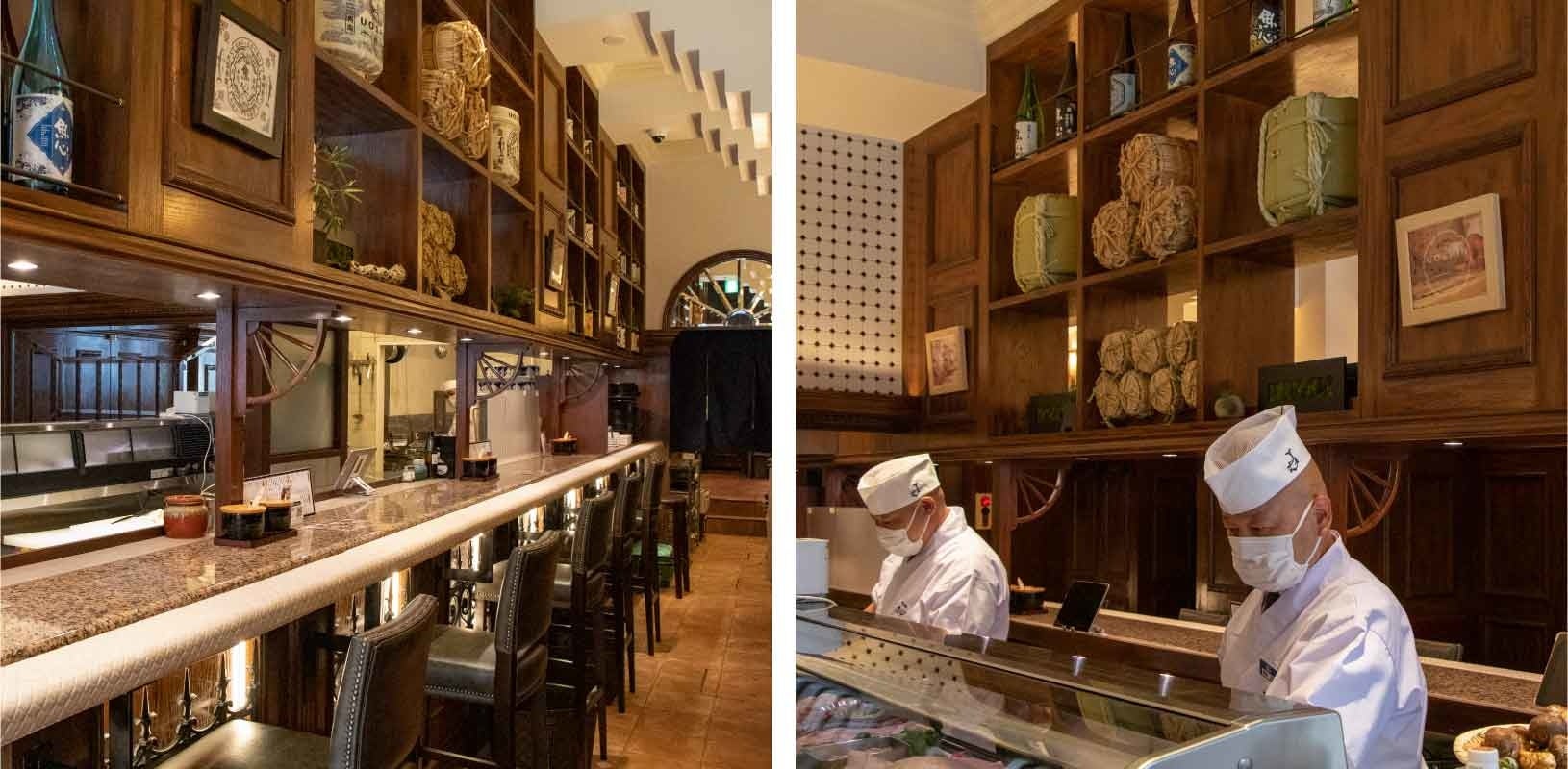 ■ヨーロッパ調の凝った造りの空間で寿司職人が捌くぶっち切りの料理を