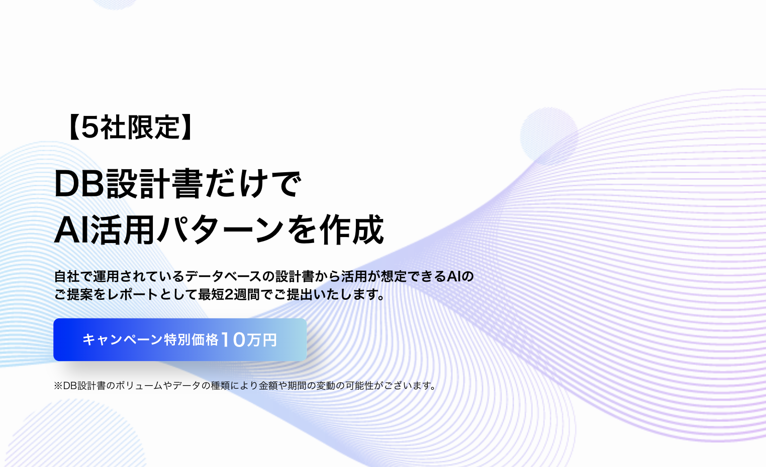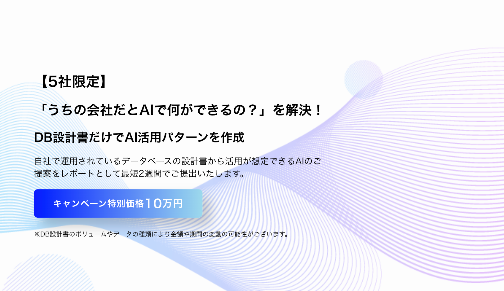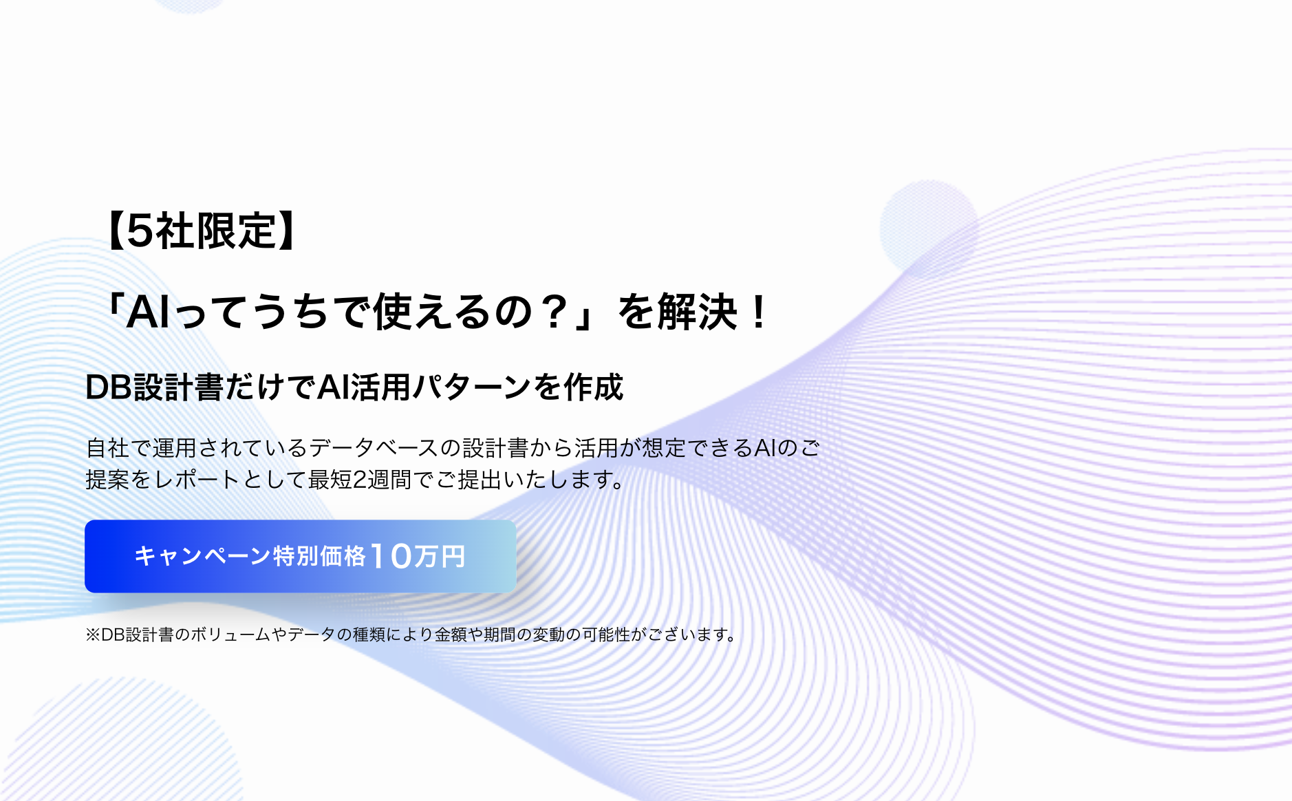 「うちの会社だとAIで何ができるの?」を解決!DB設計書からAI活用パターンを10万円でレポーティング【限定5社】