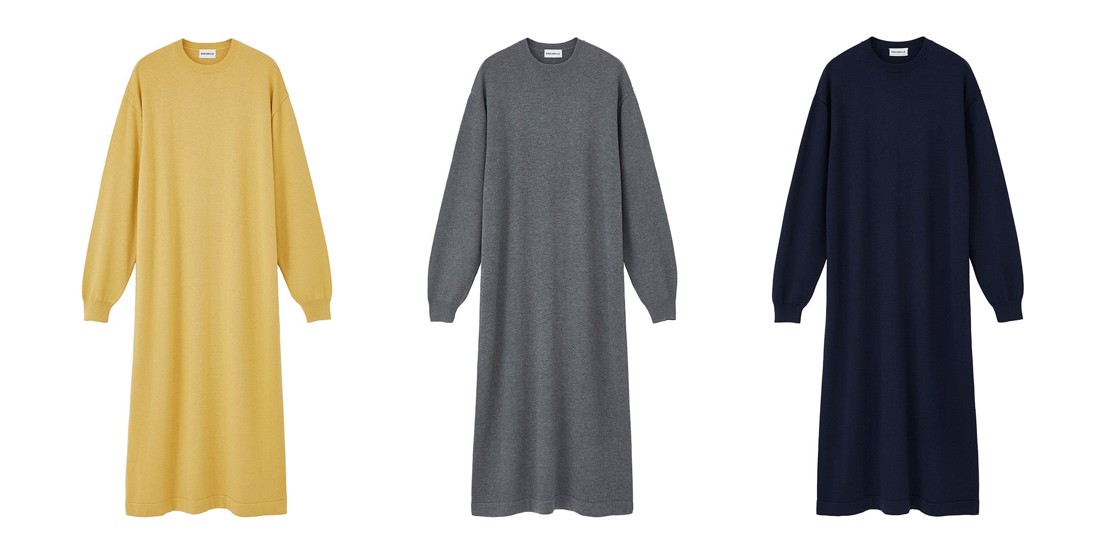 朝、さっと着て外に出ても様になる、着やすいニットワンピースをテーマに制作。