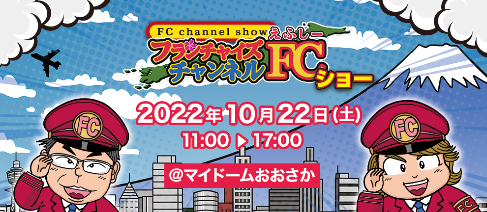FCチャンネル・ショーin大阪 10月22日(土)11時 ~ 「マイドームおおさか」にて開催!東京開催が好評だったので関西でもやっちゃいます!!おすすめFCブランドやFC本部の学校ブランドが集結!!