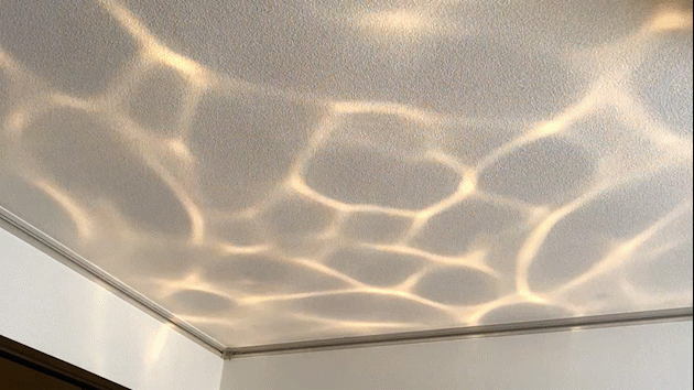- こんな照明見たことない!本物の水の揺らぎを壁や天井に映す間接照明。