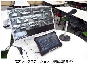 講義卓は稼働式(モデレータステーションと言われる教室中央部に配置されている円卓)で教室前方からの講義やグループワークエリア内から学習をサポートするなど、授業形態に柔軟に対応できる。