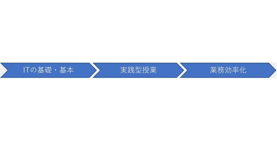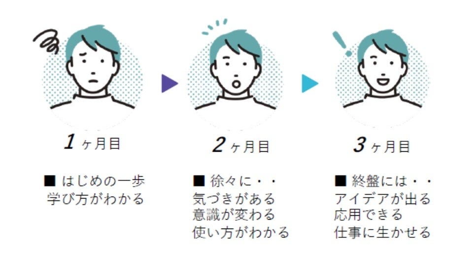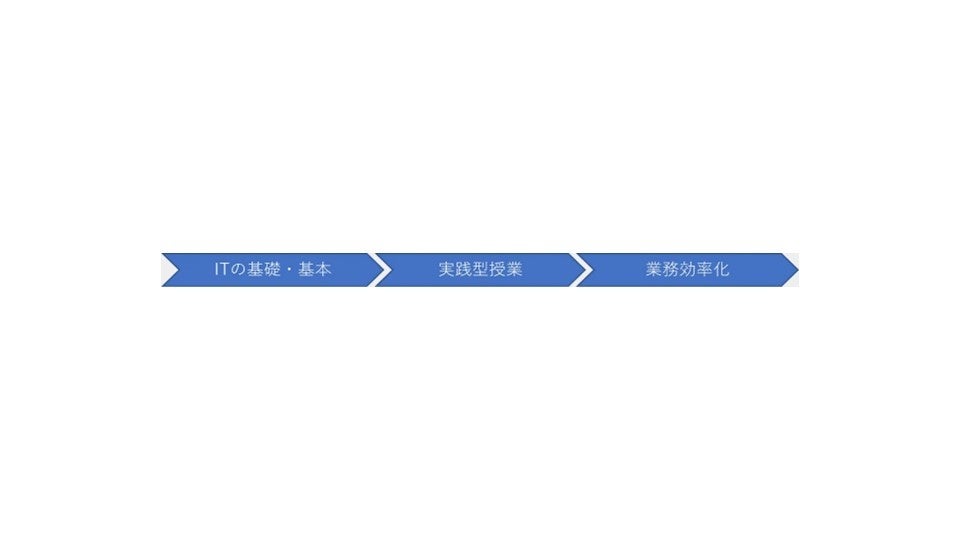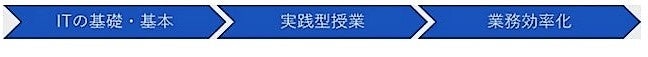 ITの基礎・基本にはじまり、Google Google Workspace の活用方法など、 仕事に活用できる知識とスキルが身に付きます。後半では、自社 へのIT導入の計画立案手順まで学ぶことができます。初めてITを 学ぶ方でも安心。担当講師が寄り添ってサボートします。【社内のIT人材をに3ヶ月で育成させる3つの特徴】